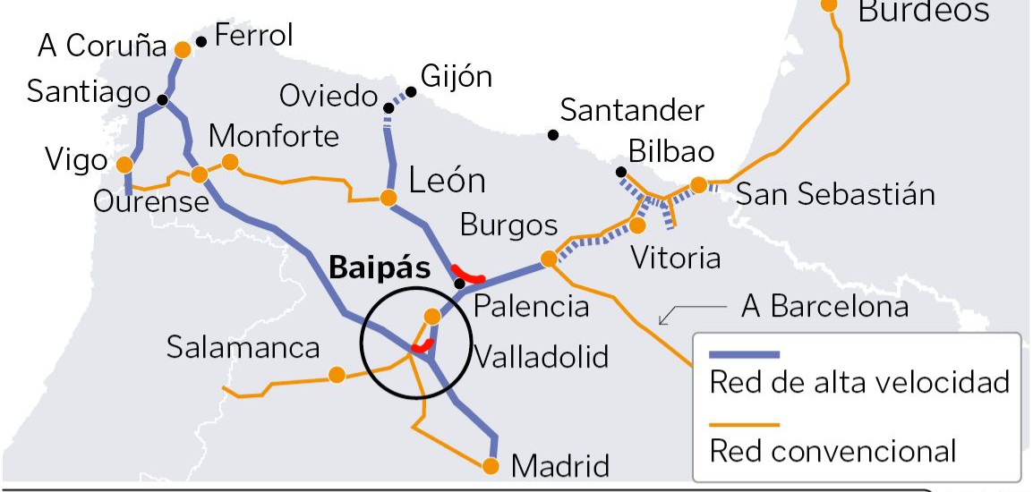 Además, igual lo suyo sería hacer más líneas transversales en lugar de seguir alimentando el sistema radial desde Madrid. Ahora mismo se está trabajando en la U de Olmedo y la de Magaz, que permitirán enlazar trenes de AV desde Galicia, y León-Asturias, respectivamente, hacia Burgos-País Vasco y en un futuro hacia Zaragoza. Sin tener que pasar por Madrid a la fuerza.
