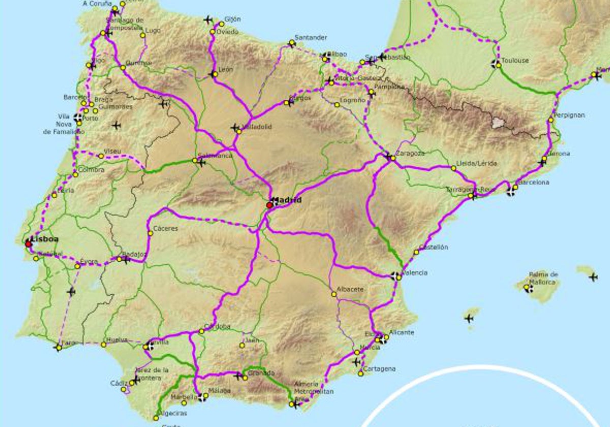Sistema radial desde Madrid… sí y no. Por su situación geográfica, Madrid también está en la ruta Málaga-Bilbao o en la Valencia-Galicia.