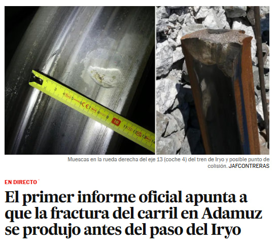 Ahora parece que la investigación se centra en un bogie del Iryo que ha aparecido a tomar vientos y que podría ser contra lo que se chocó el Alvia (y no contra el propio Iryo). ¿Se le desprendió al Iryo un bogie y éste ocupó la vía contigua? Hay que esperar y no precipitarse si tenemos un mínimo interés por descubrir la verdad.