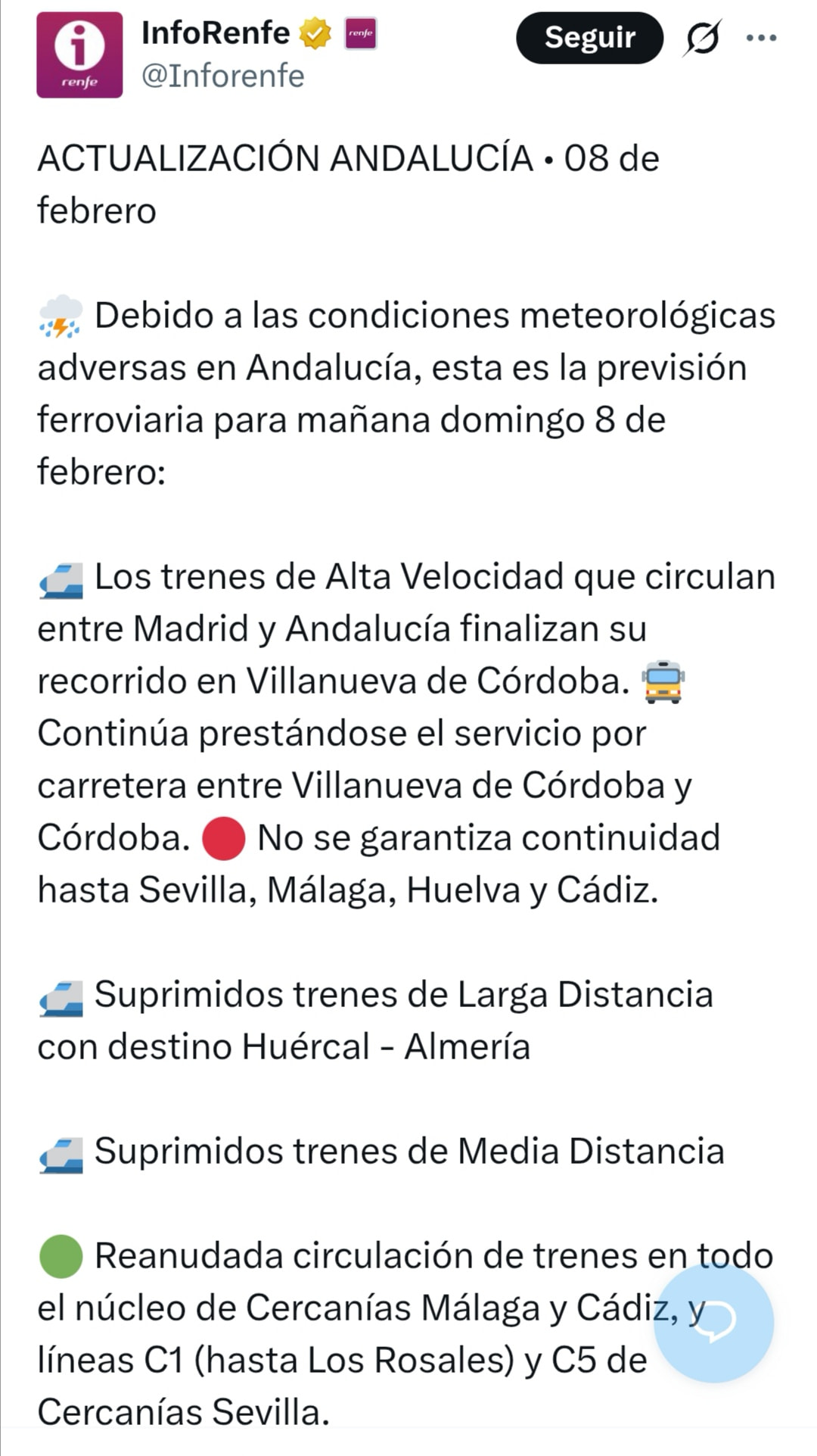 Bueno, sin tren… a Madrid. Pero sigue habiendo trenes a Sevilla y Granada.
