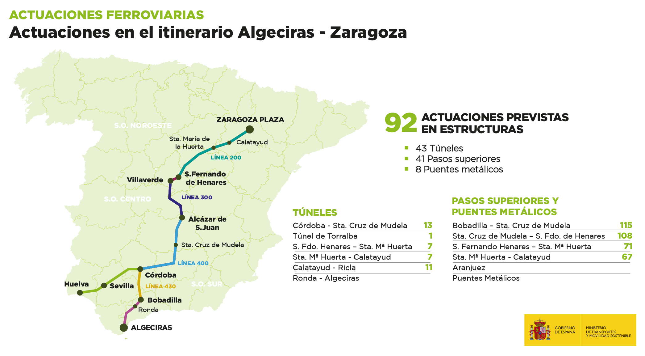 Los trabajos comprenden la adaptación de gálibos en túneles y pasos superiores, la implantación de un nuevo sistema de señalización y la renovación integral de la vía, entre otras mejoras en la infraestructura