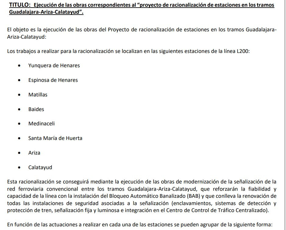 Tras las obras de la autopista ferroviaria Madrid-Zaragoza se va a emprender el proyecto de racionalización de estaciones en los tramos Guadalajara-Ariza-Calatayud.