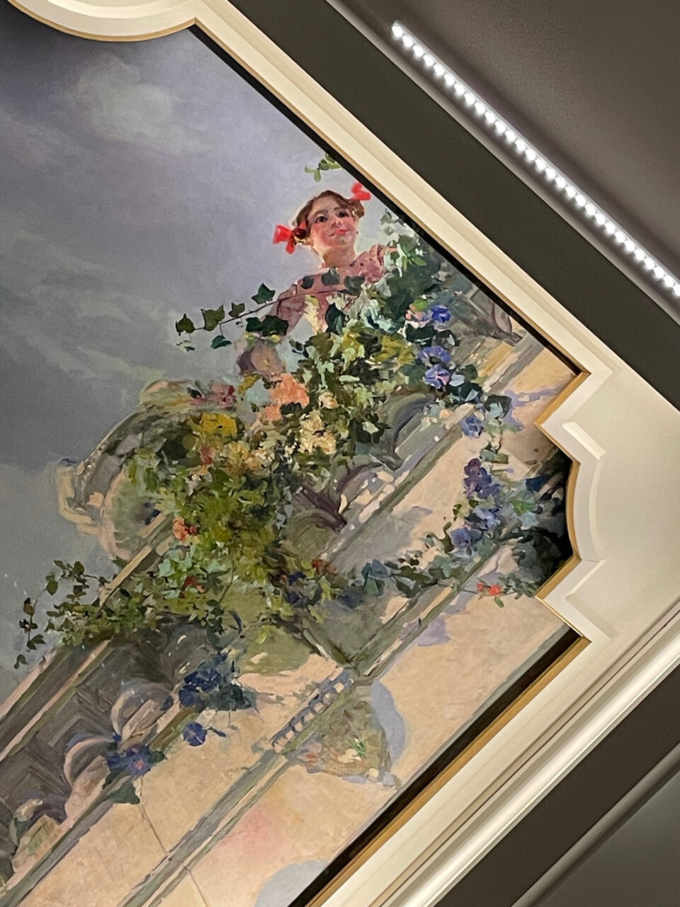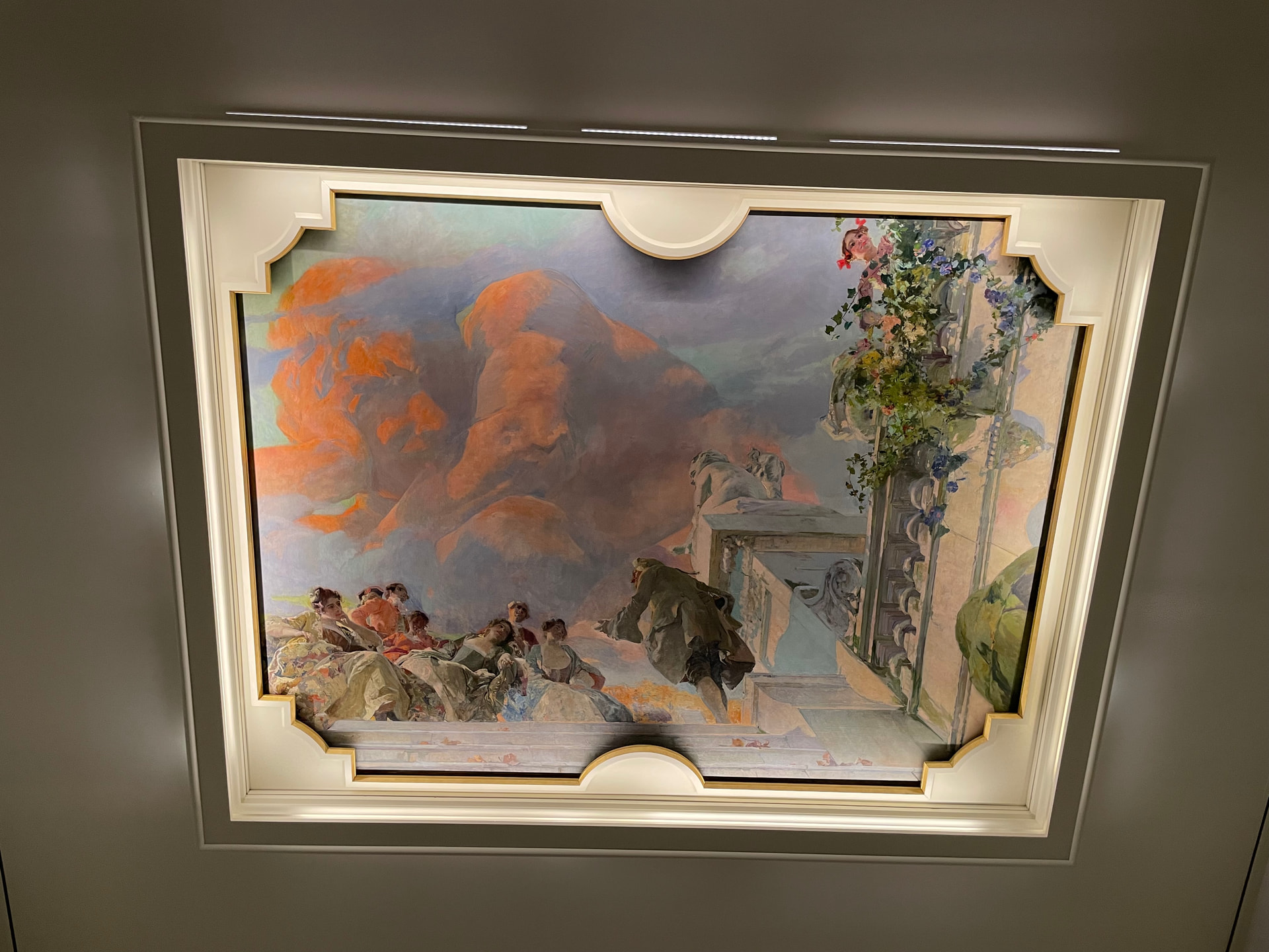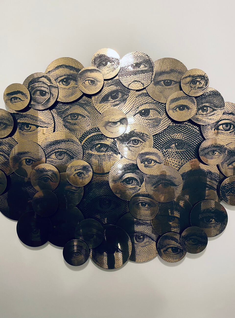 Reflections in a Golden Eye, de Carlos Aires, situado al final de un largo pasillo lleno de obras de arte