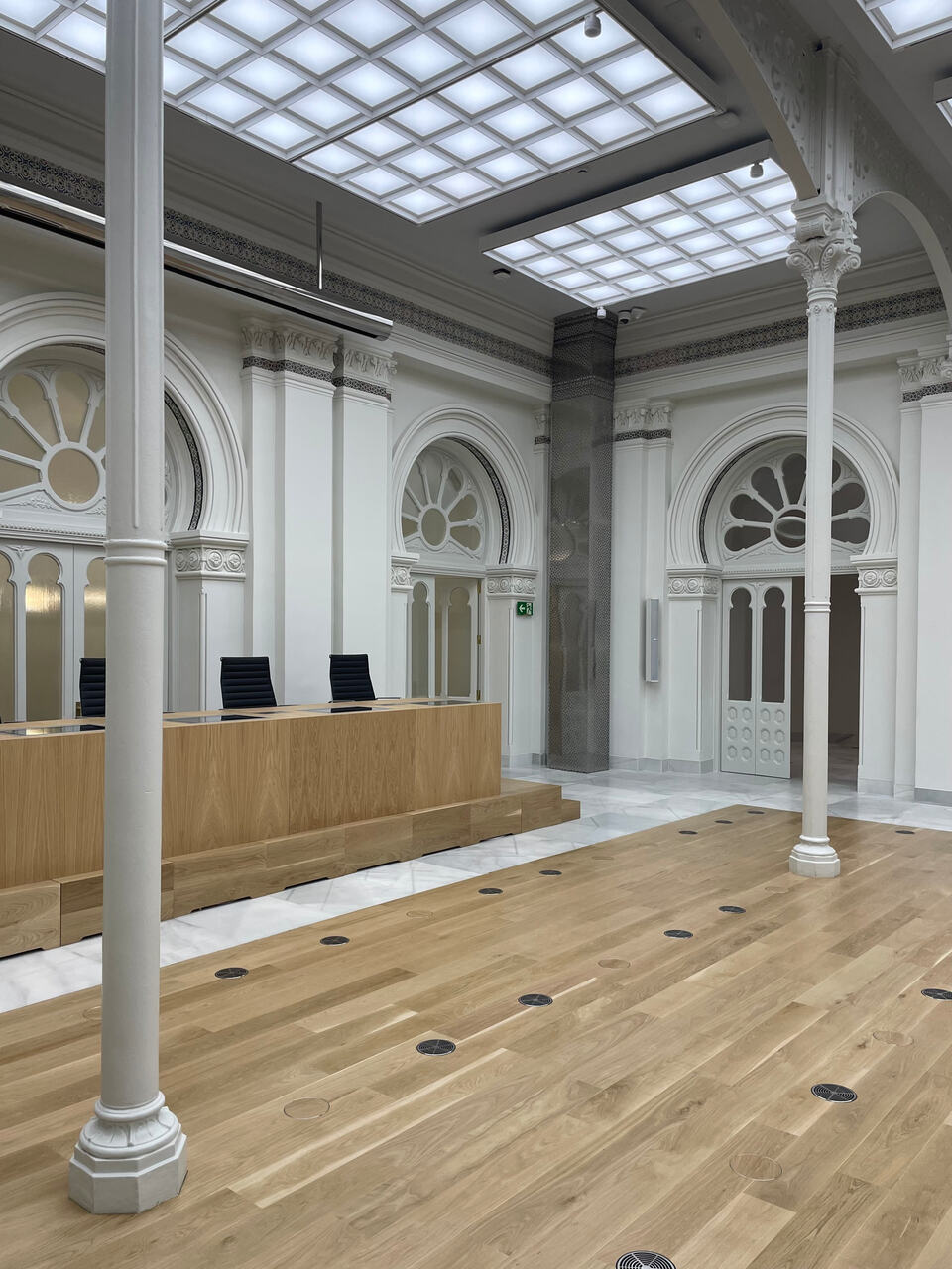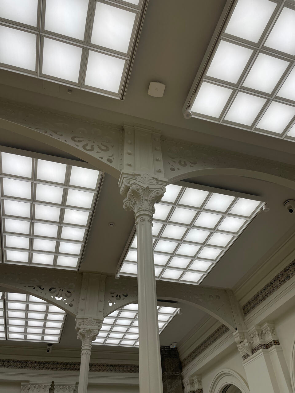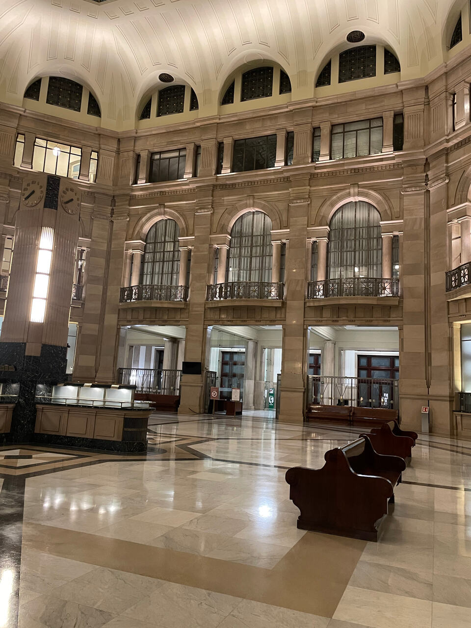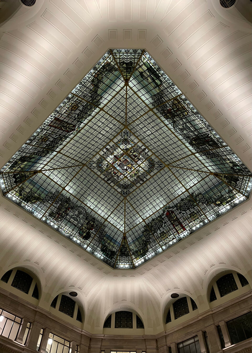 Las vidrieras del Patio de operaciones, de estilo art déco, son otra de las joyas del edificio
