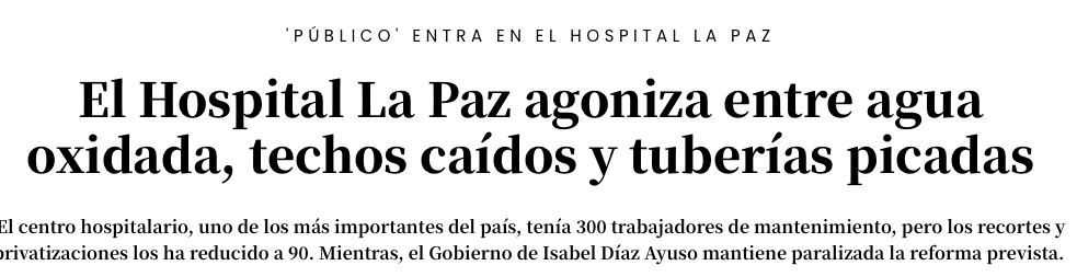 En lo que sin duda estoy de acuerdo es que algunos hospitales en Madrid como la Paz y especialmente el Clínico tienen algunas zonas con instalaciones indignas que no se han reformado en décadas.