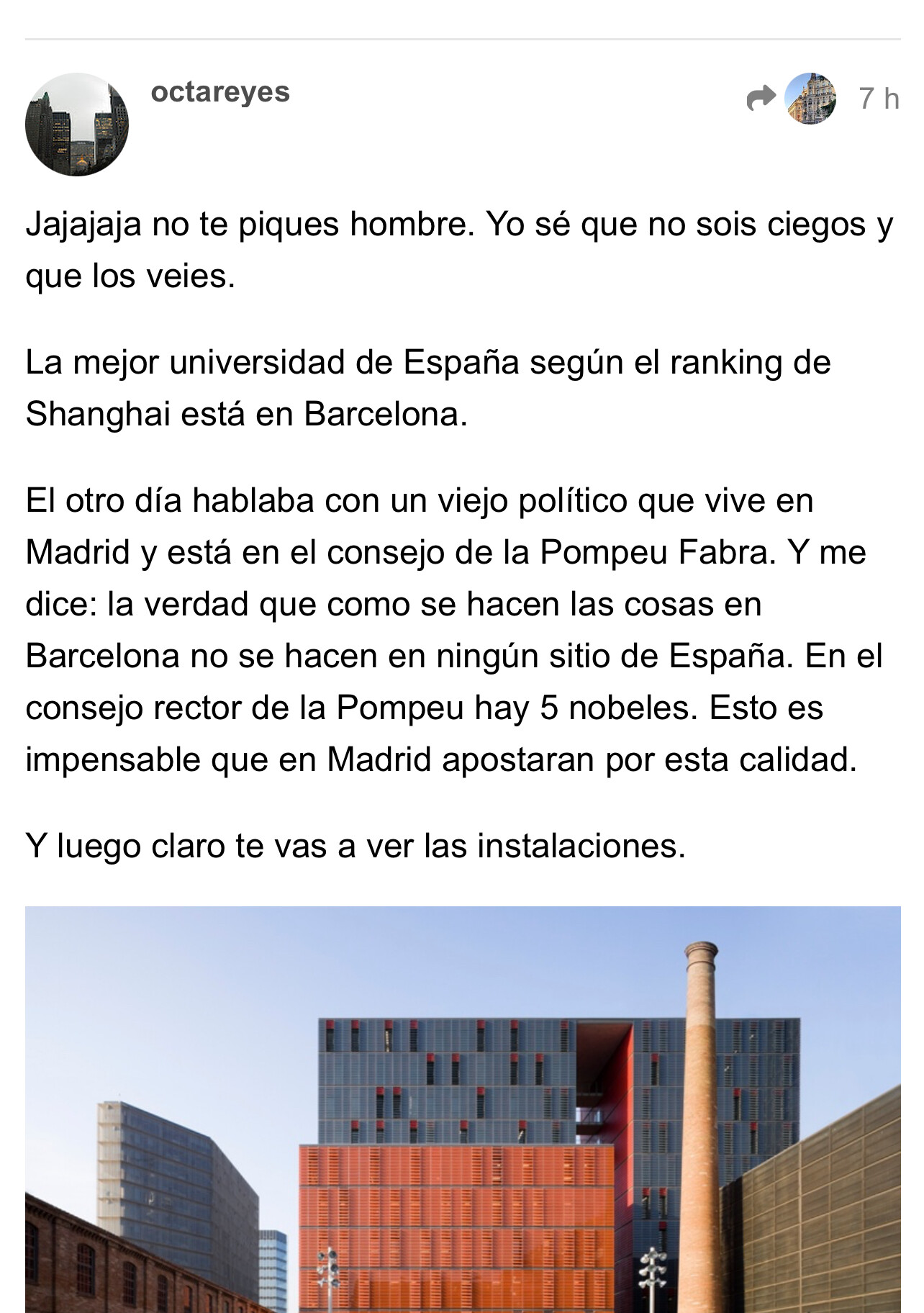 Yo también tengo curiosidad por saber quiénes son, la verdad. Yo creo que alguien le pasa datos de vez en cuando en los que Barcelona pueda destacar solo para venir a soltarlos aquí.