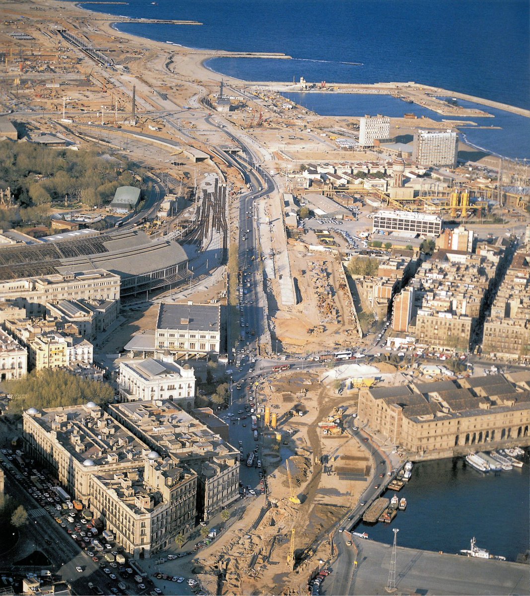Barcelona-Badalona. Ya se puede ver el tren. No había parque de la Ciutadella ni Ensanche ni nada.