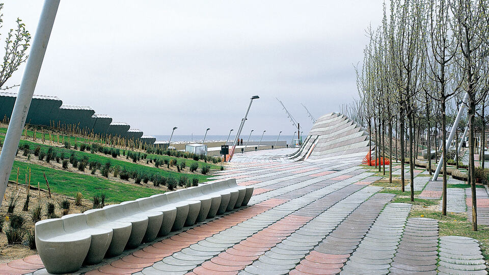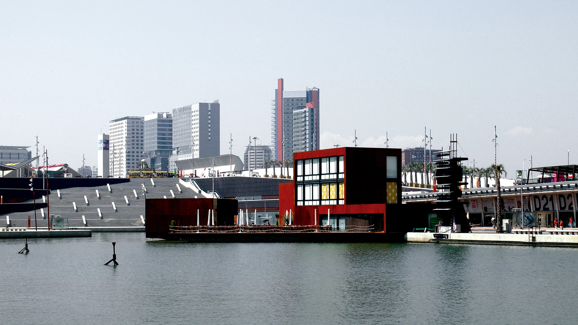 Playa de la Barceloneta, con los desaparecidos baños de San Sebastián.