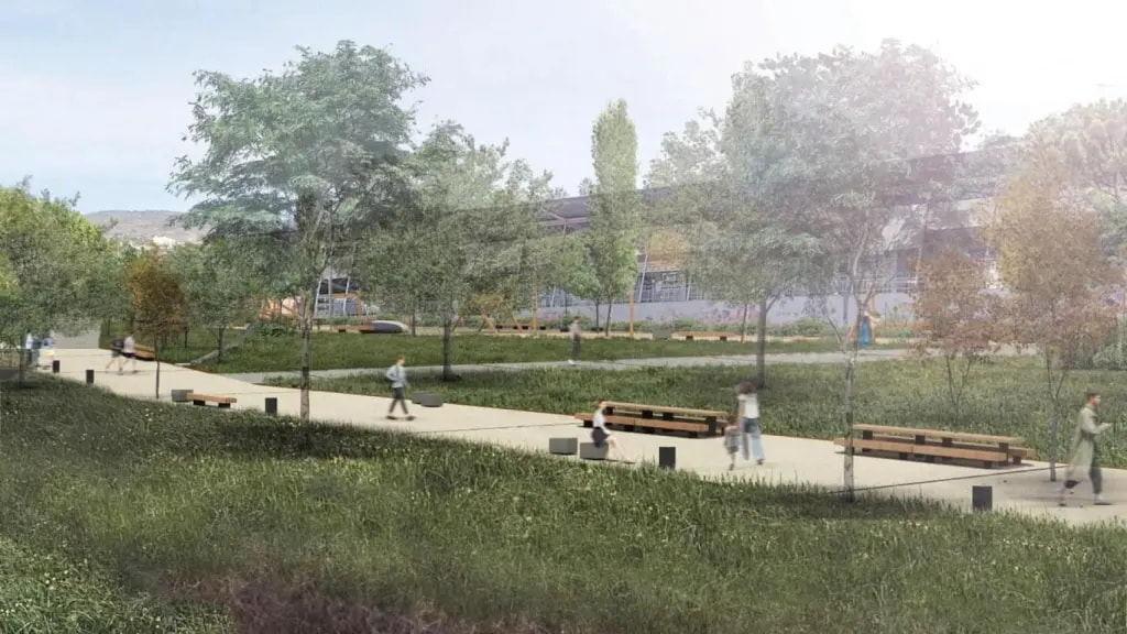 El diseño, obra del equipo conformado por Esteyco y Estudi Martí Franch, intervendrá sobre una superficie de 12,7 hectáreas dividida en dos áreas principales: los márgenes y una gran zona central que hoy es un descampado.