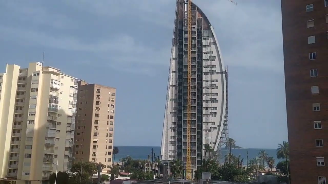 Si te sirve pongo un par de fotos de delfin tower y (creo) del complejo sunset waves, las saque de noche porque de día está invadido de gente y es casi imposible de sacar desde la playa sin que no se vea gente, mi impresión es que van muy avanzadas las obras y que han cambiado la fachada costera de la playa de poniente ya que se ven imponentes