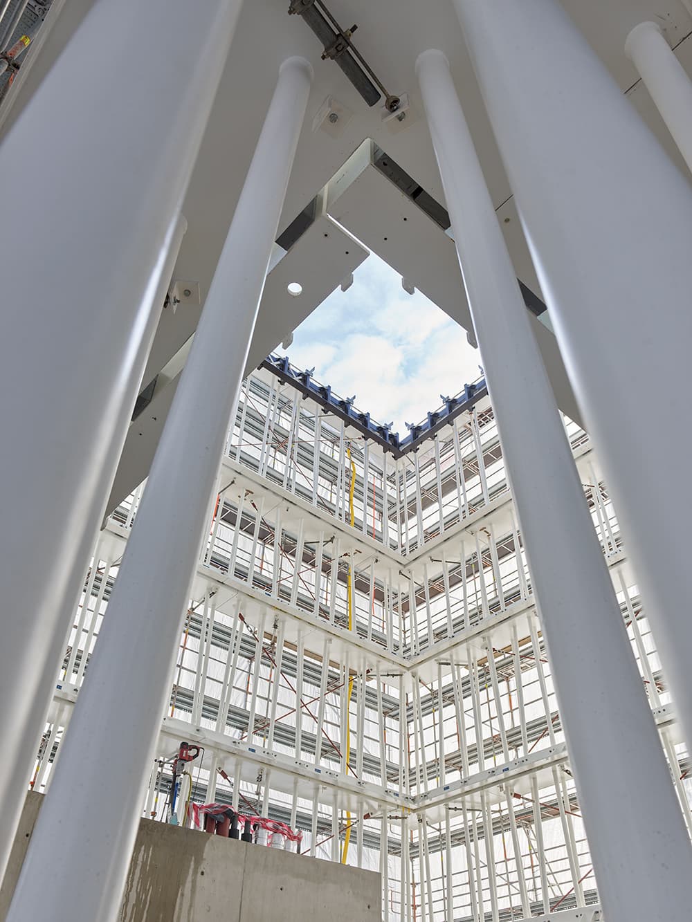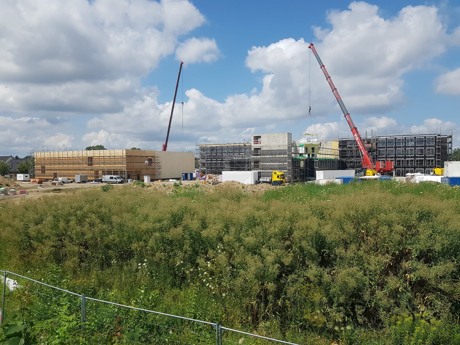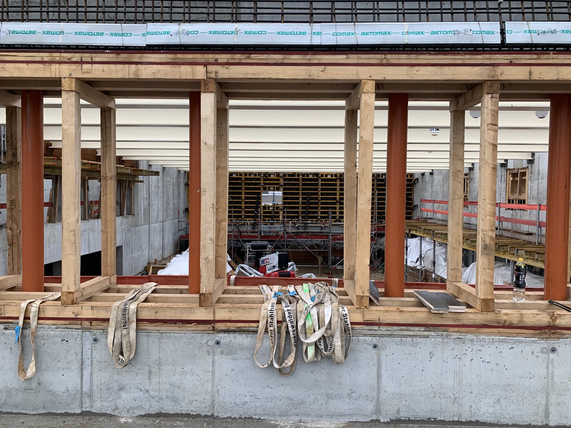 Las obras de construcción comenzaron a finales de octubre de 2022, inicialmente con el reconocimiento de artillería necesario. Mediante perforaciones, excavaciones y prospecciones, se examinó el suelo en busca de municiones y otros artefactos explosivos. Luego comenzaron las extensas obras de ingeniería civil.