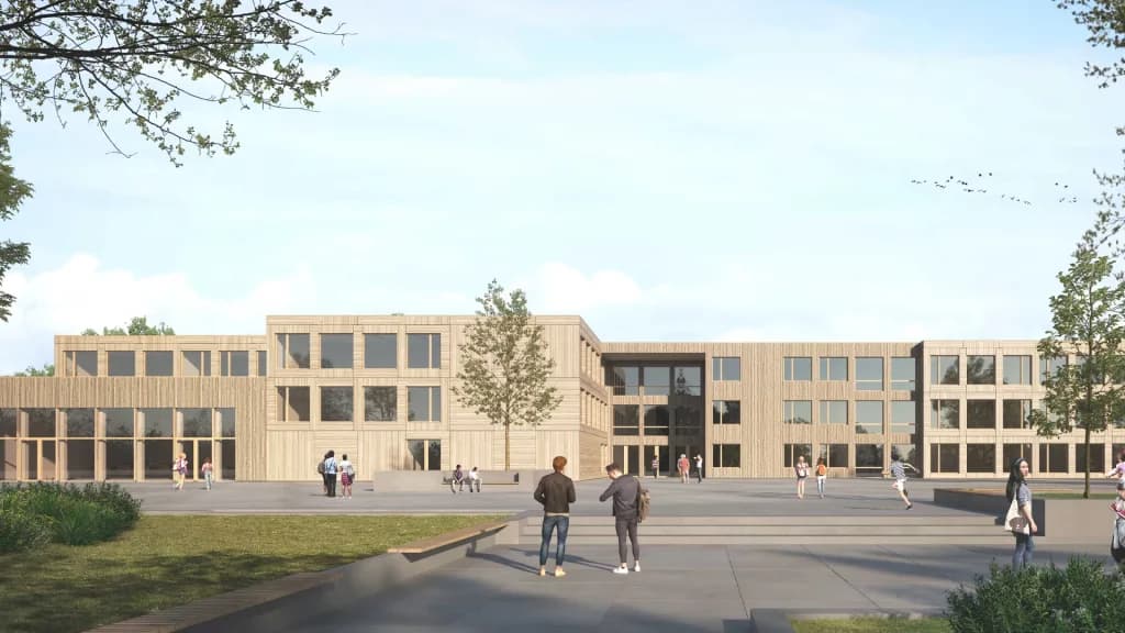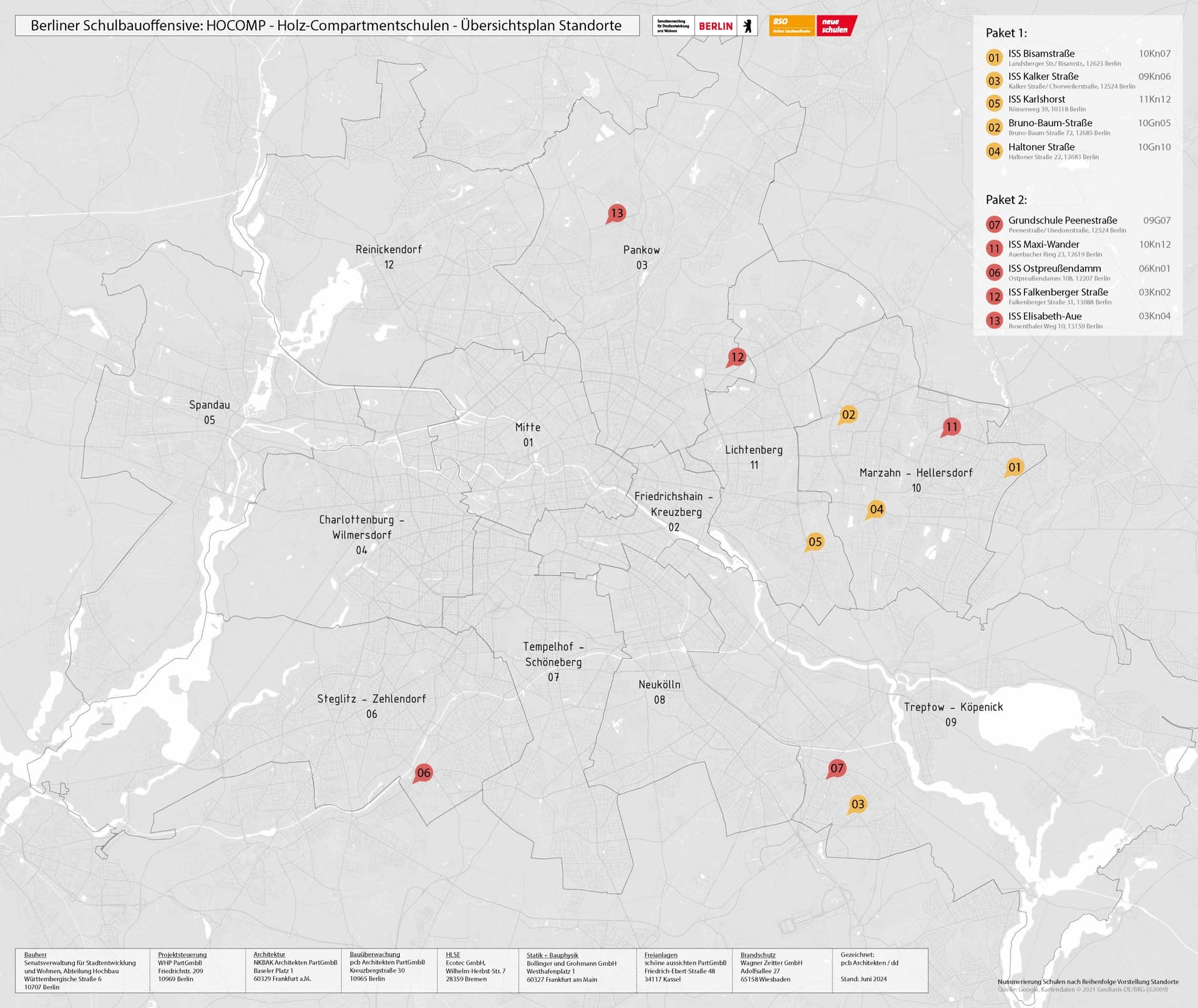 El 22 de julio de 2025, se colocó la primera piedra de otra escuela de compartimentos de madera (HOCOMP) en Bruno-Baum-Straße 68-72, en el distrito de Marzahn-Hellersdorf. En presencia del Director de Edificios del Senado, Prof. Kahlfeldt; el Secretario de Estado de Construcción y Digitalización Escolar, Dr. Torsten Kühne; el Concejal de Distrito de Escuelas, Deportes, Educación Continua, Cultura y Gestión de Instalaciones, Stefan Bley; y los arquitectos Prof. Nicole Berganski y Andreas Krawczyk, la cápsula del tiempo se incrustó en la losa del suelo.