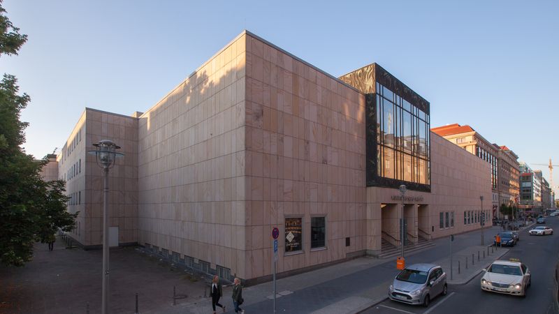 En los bombardeos de 1945, la fachada del teatro colapsó pero la sala de representaciones tuvo mejor suerte. Así que la RDA decidió darle al edificio un exterior moderno y restaurar la sala histórica que había sobrevivido. Cuando uno pasa por en frente no se imagina lo que hay dentro.
