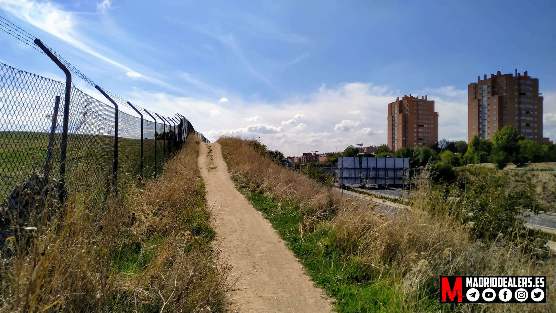 Por otra parte, la conexión entre el cerro almodovar y la cuña verde de vicalvaro queda garantizada también por el PGOUM de 1997 donde se establece el corredor verde que conecta el parque de valdebernardo con la cuña de vicalvaro mediante una zona verde que en parte ya está construida y en otra parte está cerrada por una valla oxidada: