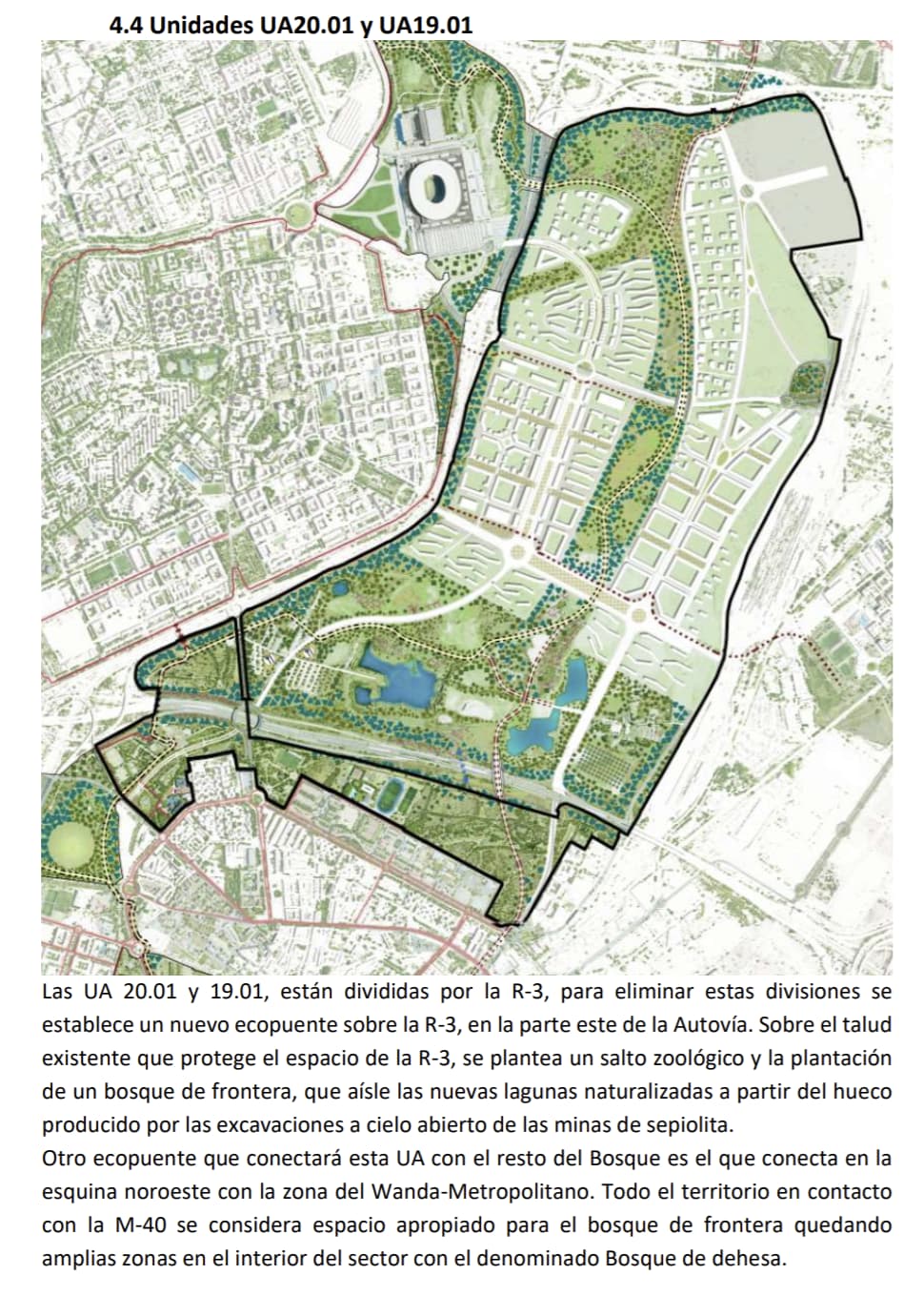 Entonces. tenemos una conexión sobre la M40 que no se puede hacer como quiere el estudio no porque se haya levantado una tapia nueva en esa parcela. Sino porque donde se plantea el “ecopuente” hay una parcela privada que no entra en el concurso aunque el estudio la haya pintado de verde. Para mí, no es un problema de planificación que un estudio use Google Maps y no se de cuenta de que hay una tapia de hace decadas cerrando una parcela que ya está en obras que no conocen porque Google Maps no tiene las imagenes de dichas obras. Es un error tolerable del estudio, no pasa nada. La ponemos 400 metros al norte y listo. Dotando así al parque Forestal Fuente Carrantona de una salida al sureste y otro al noreste en lugar de dos salidas al sur separadas por 20 metros. No hay drama.