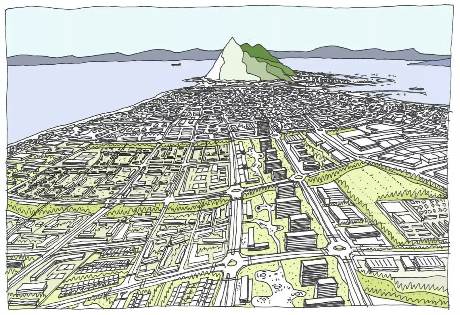 la parte del estadio municipal/ferial/princesa sofía y la zona del fuerte de santa bárbara son lo que más me gusta. la reordenación del zabal se me parece demasiado a un pau sin demasiada ambición, con una densidad bajísima y todo rodeado de viarios que probablemente pequen de sobredimensionados para lo que han proyectado (pero bueno, cualquier cosa mejorará lo que hay ahora). ah, y no hay ninguna mención al transporte público masivo para una ciudad que crecería hasta los casi 100.000 habitantes