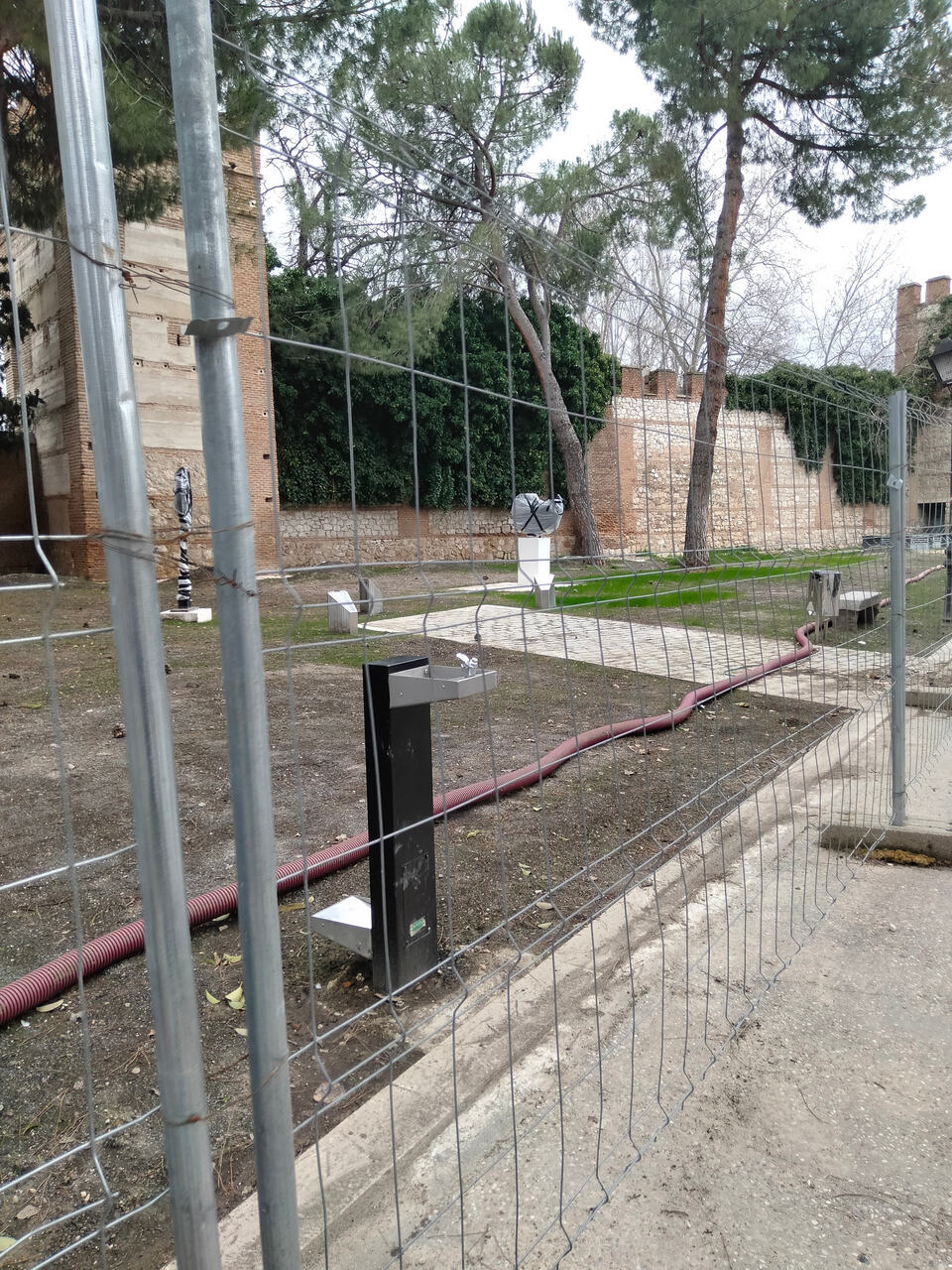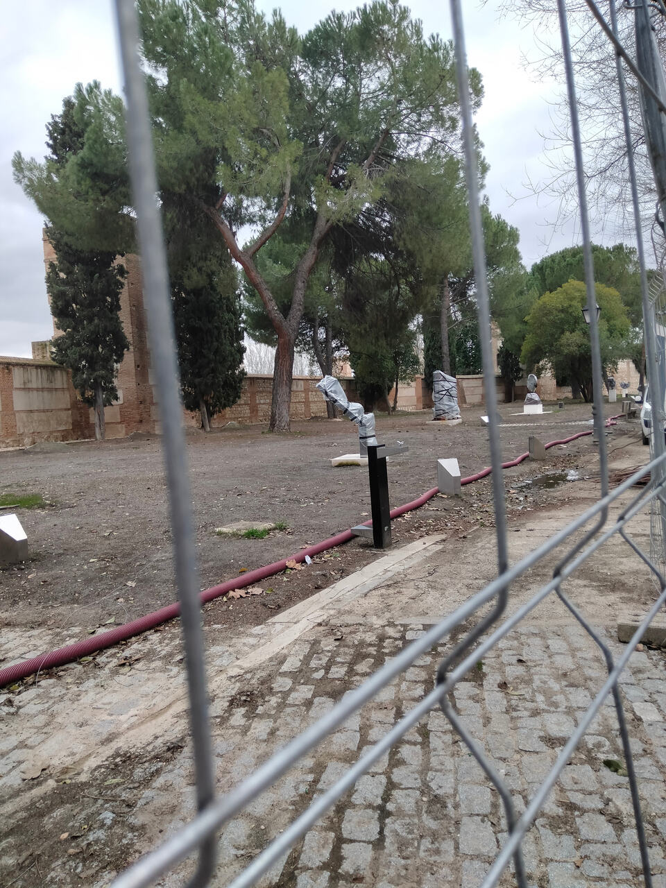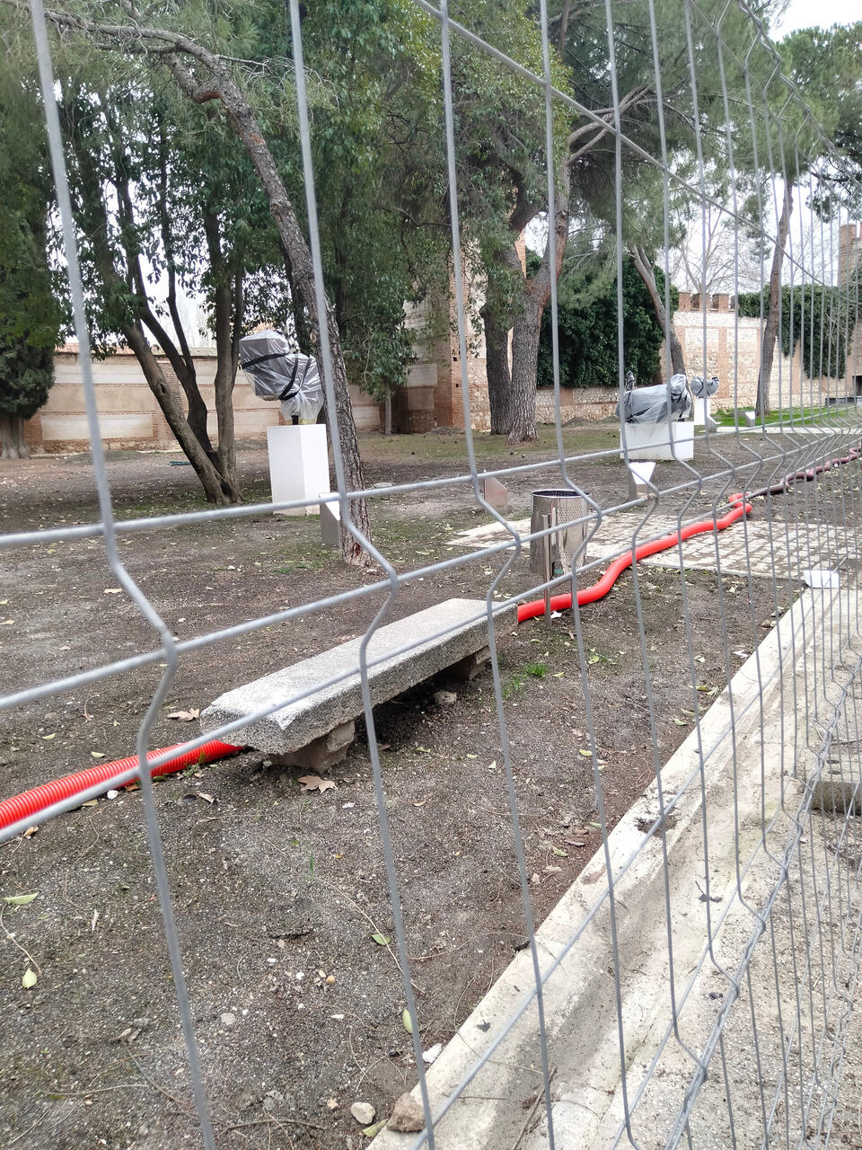 También adjunto algunas fotos de cómo van las obras para dignificar el MUSEAL (Museo de esculturas al aire libre) en el tramo de la muralla en la calle Andrés Saborit. Se han creado nuevos caminos de adoquines para visualizar mejor las esculturas, han restaurado las dos fuentes existentes y también puesto nuevas papeleras, y han puesto nuevos focos para iluminar la muralla que han sido disimulados mediante unos cúmulos de tierra en forma de colina. Han integrado todo el mobiliario en la zona de césped, que tardará un poco en volver a crecer. Deberían de reformar la calle, está en un estado muy pésimo
