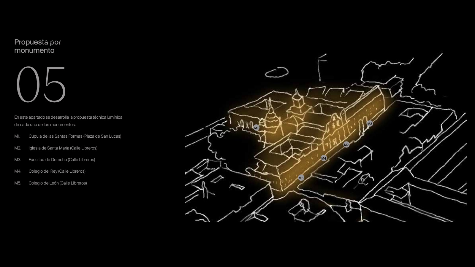 El proyecto del Museo de Esculturas al Aire Libre contempla la renovación integral de toda la iluminación monumental de la muralla así como la iluminación detallada de cada una de las esculturas que componen en MUSEAL, 60 en total