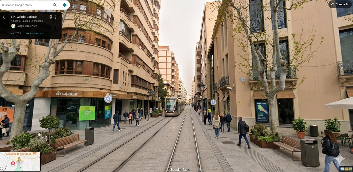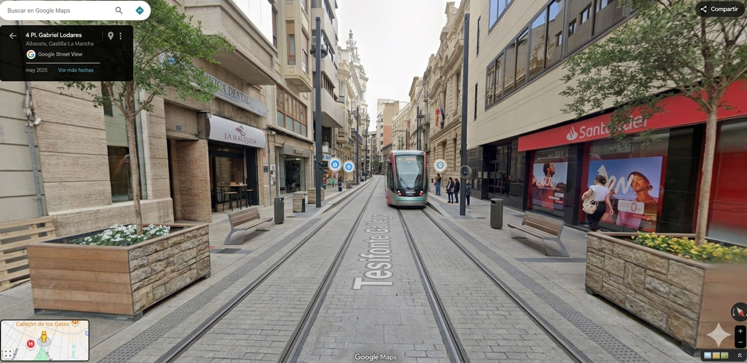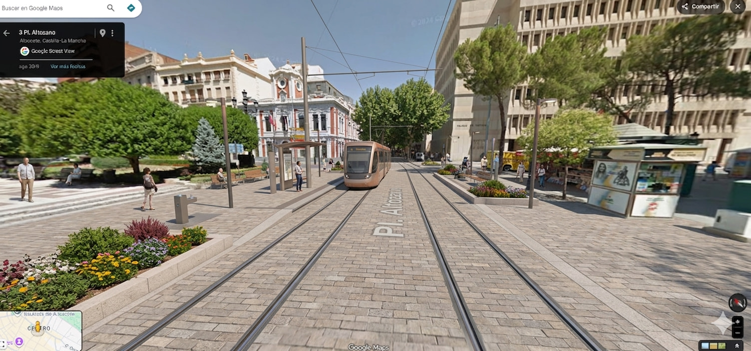 Es una propuesta personal generada con inteligencia artificial a día de hoy no existe tal tranvía en la ciudad de Albacete pero sería una muy buena idea ya que es un transporte muy sostenible y eficiente y en una ciudad como en Albacete que es todo llano sería muy fácil su instalación.