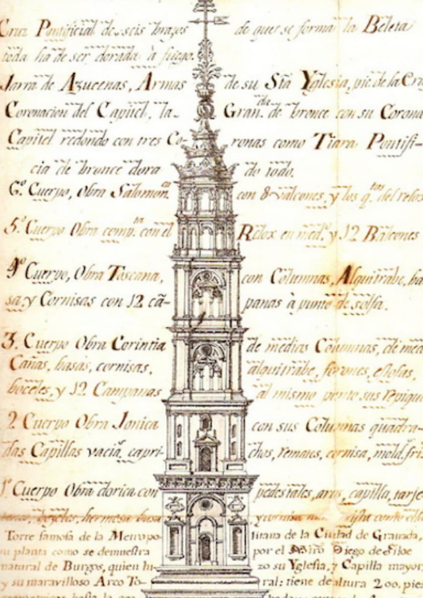 O cuatro pináculos esquineros, como en su prima de Guadix: