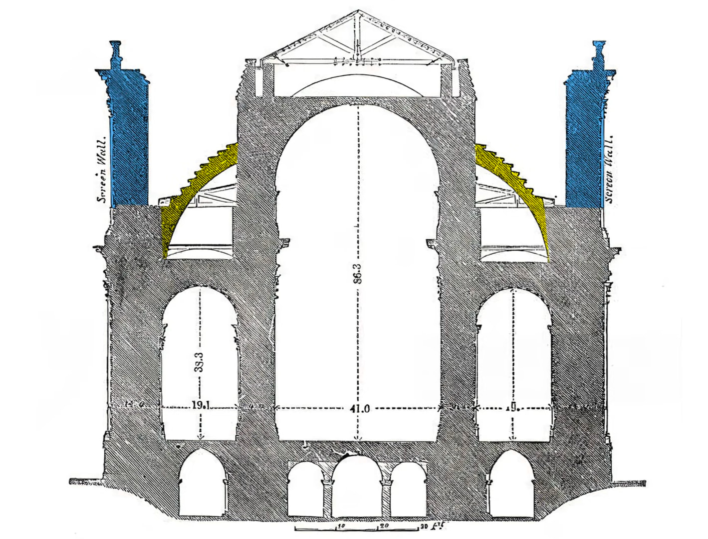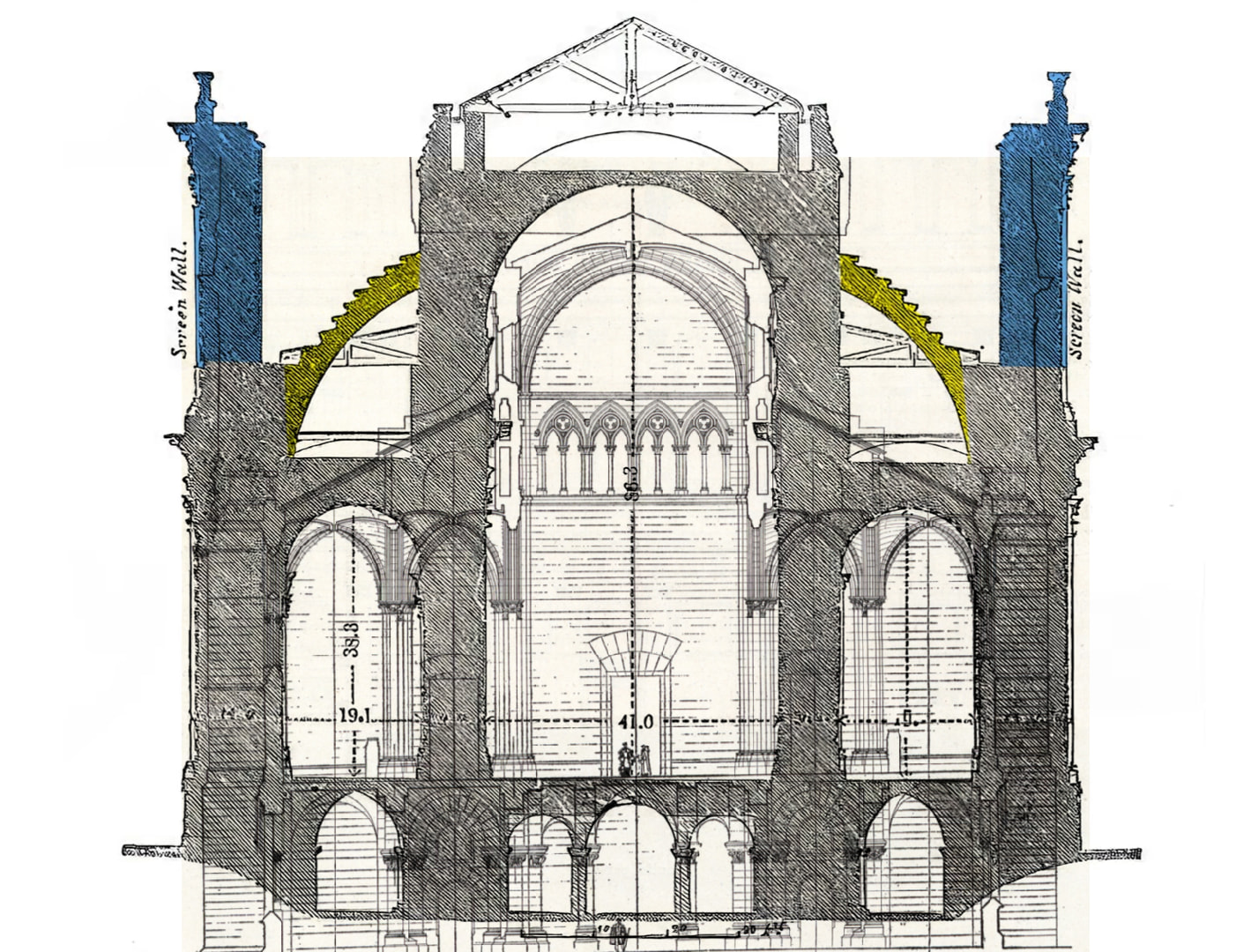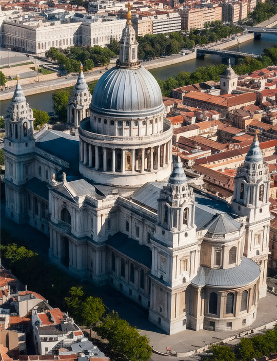 Volvemos con nuestra querida catedral en estos días de asueto para mostrar la ingeniosa solución de Wren en Londres, que habría sido perfecta para esa intención de crear un interior gótico y un exterior clásico, que el afamado historiador de la arquitectura no tuvo en consideración, a pesar de su idoneidad absoluta para crear un claristorio ligerísimo que desafiase a León, en lugar de la medianía llena de óculos con artesonado de hormigón de estilo namibio.