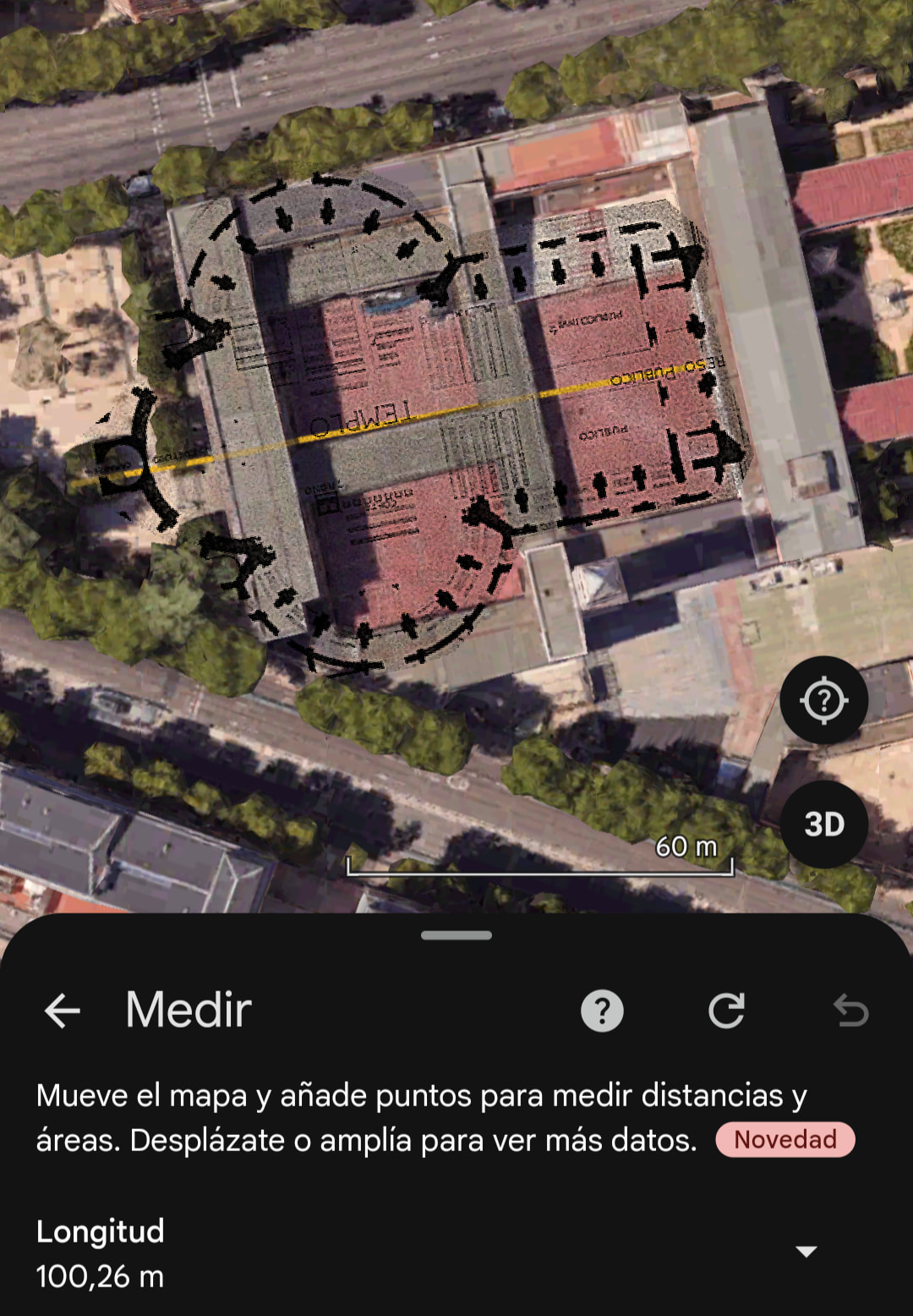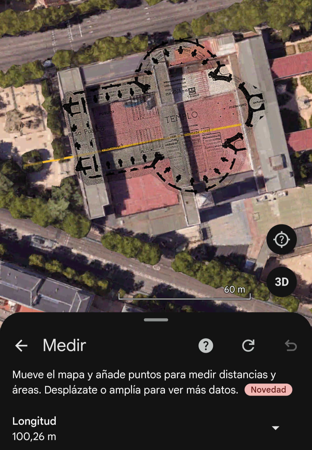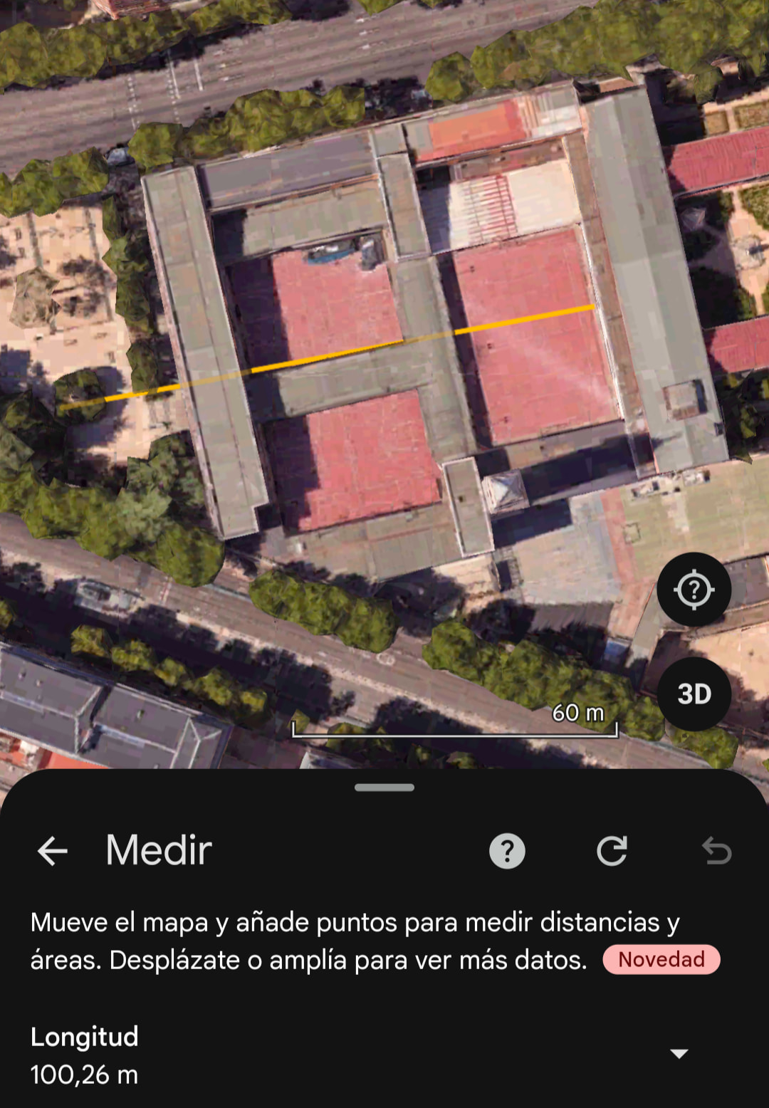 Girándolo podríamos llegar a los 100 metros de largo, pero habría que meterse en el parque: