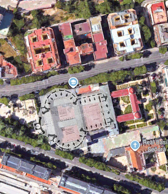 Y lo segundo, yo me decantaría por hacer la Basílica-Panteón en sentido contrario para estar mirando hacia la avenida Ciudad de Barcelona ampliando asi los tramos pero manteniendo el proyecto de planta de cruz.