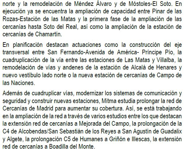 La jugada de la Comunidad de Madrid es alucinante. Esta se compromete a hacer una línea de cercanías de dudosa viabilidad, la dejan a medias y ahora piden al Estado que se haga cargo porque ya no les interesa.