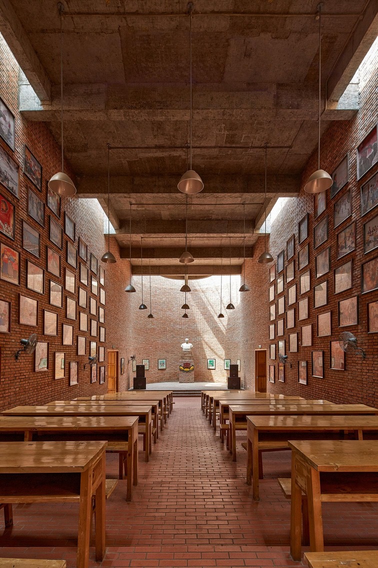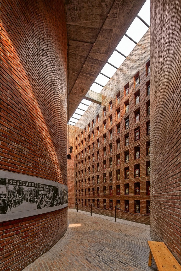 Como los templos en mitad de barrios bulliciosos, las salas de objetos históricos se insertan en espacios de uso comercial, pero se abstraen de ellos para lograr una atmósfera reflexiva reforzada por las superficies de ladrillo y la luz cenital.