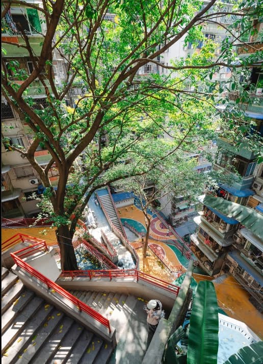 Por cierto. Como en Chongqing, por orografía, no es posible lo de la malla reticular… Ni tampoco llevar el tráfico rodado a todas partes… El urbanismo que sale termina siendo algo más amable, o eso parece.