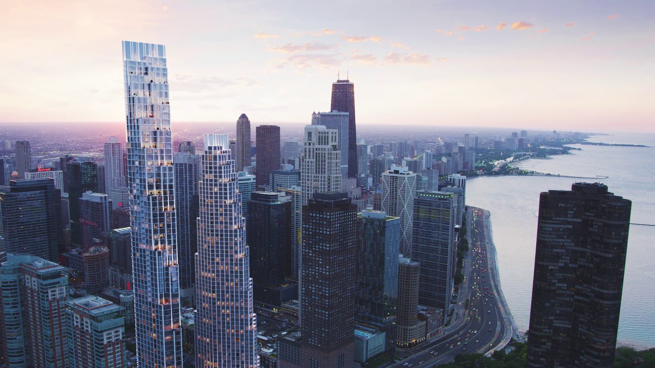 Ubicado en el distrito histórico de Michigan Avenue de Chicago , 1000 M es un rascacielos de 73 pisos que abarca 788 pies (240 metros) y consta de una base angular rematada con una torre de borde curvo.