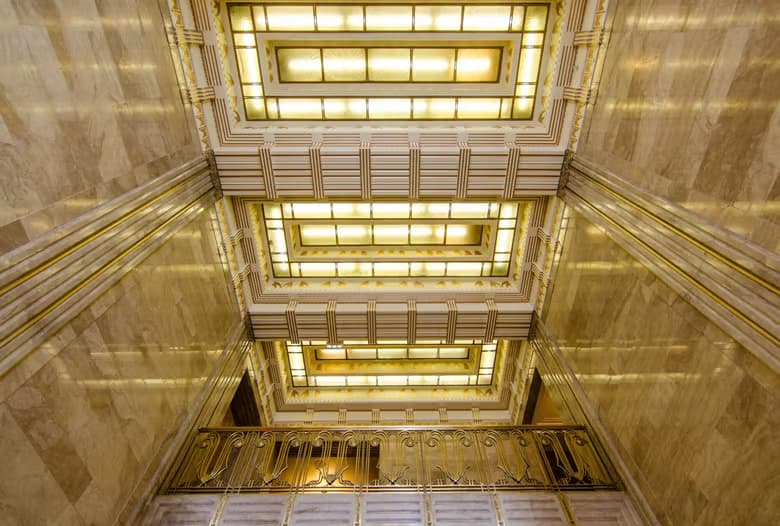 La tapa del edificio está adornada con oro auténtico de 24 quilates, aunque tiene sólo cinco milésimas de pulgada de espesor.