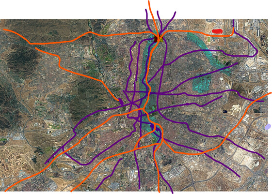 Superpones centros de trabajo (según el Atlas de la CAM), red de Metro y red de Cercanías, y cuesta mucho entender el criterio de elección de Valdebebas para una Ciudad de la Justicia tan grande y que va a recibir a 30.000 personas al día.