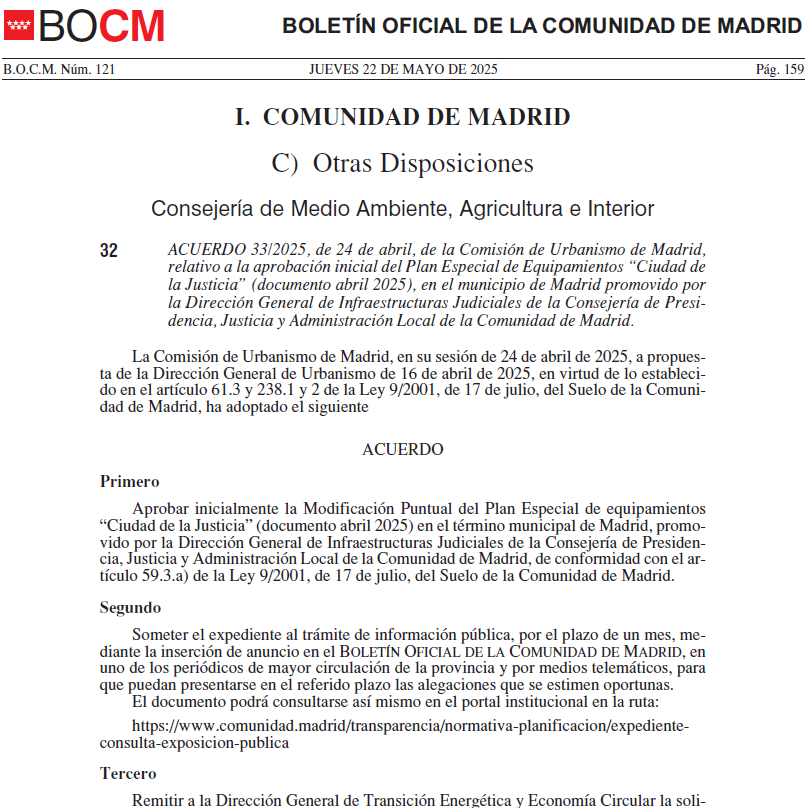 El Plan Especial de la Ciudad de la Justicia ha sido promovido y redactado por la Consejería de Presidencia, Justicia y Administración Local de la Comunidad de Madrid, presidida por el periodista Miguel Ángel García Martín: