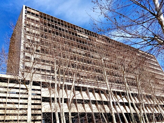 he recordado cómo ek Campus siempre ha presentado un estado bastante dejado: solares, descuido general de edificios y jardinería pero, sobre todo, esa avenida de la Victoria (o como se llame ahora) que la atraviesa de lado a lado, segregándola en dos mitades, llenándola de ruido y humo y complicando su normal funcionamiento como campus universitario, al menos al estilo estadounidense, objetivo inicial del proyecto.