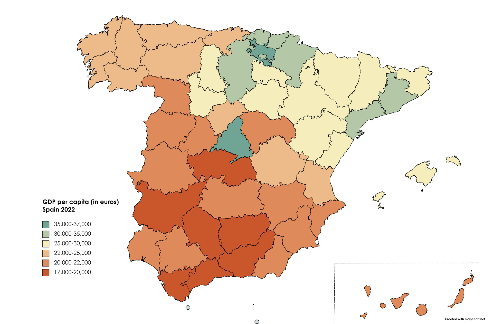 La prosperidad madrileña sí se ha desparramado, y si no, que se diga cuáles son las provincias que más han crecido en los últimos 20 años. ¿Quién quiere hacerlo? Quizás aparezca una que empieza por G y termina por Uadalajara en lo más alto.