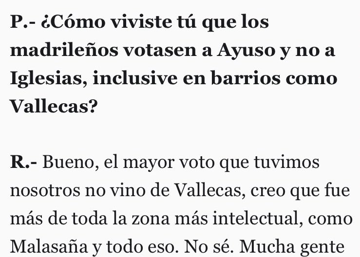 Como dije, soy de la España vaciada, he estudiado en Madrid y he vivido en Barcelona, dos ciudades muy mediocres a nivel europeo, todo este asunto de ver quien la tiene mas grande (si me perdonas la expresion), me resulta rancio, paleto, barrio bajero, una guerra del siglo XXI entre Villa Arriba y Villa Abajo alegrándose de que el otro tenga 4 favelas y nuestra trinchera solo 3 cuando en ambas trincheras cada vez hay mas. Y esa es una de las razones por las que me fui de España, es imposible hablar de nada sin que alguien te salte al cuello con que los rojos o los fachas o los madrileños o los catalanes, a ver quien puede conseguir mas likes en su comentario mono neuronal de 144 caracteres.
