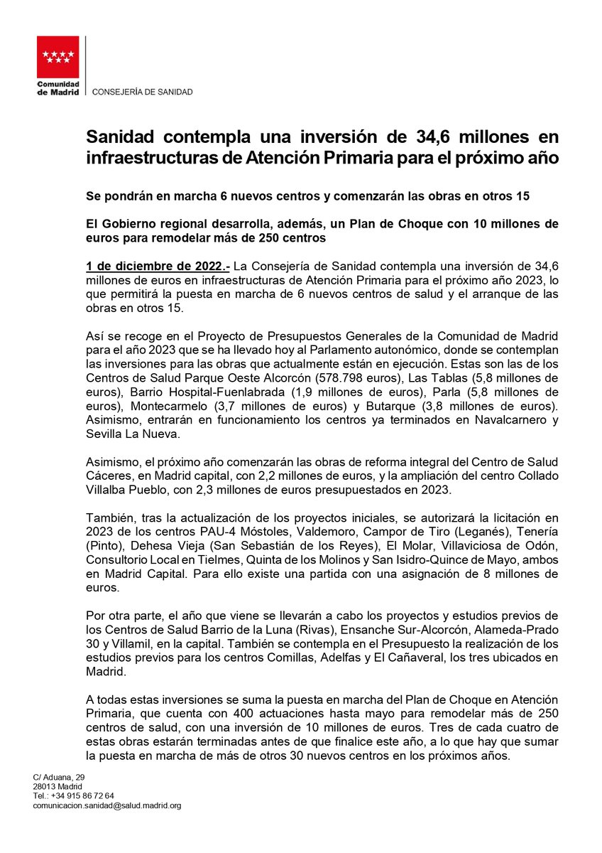 Van a empezar las obras en 15 centros de salud y se ponen en marcha otros 6 nuevos.