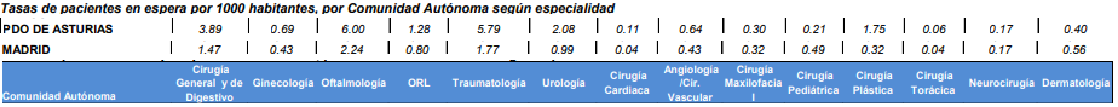 Tasas de pacientes en espera por 1000 habitantes, por Comunidad Autónoma según especialidad:Datos 2024 (no hay mas recientes)