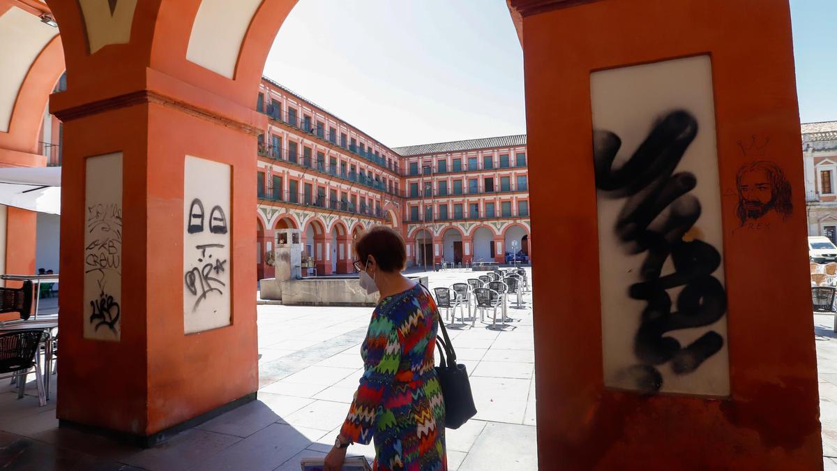 Para ser sinceros, la gestión del ayuntamiento con esta plaza ha sido nefasta. La única plaza castellana de Andalucía invadida al extremo por los veladores, sin apenas vigilancia y vandalizada por graffitis. Tal era el abandono que las farolas de los arcos diseñado por Juan Cuenca se caían, suponiendo un peligro para el peatón. De hecho se retiraron y no se sabe lo que el consistorio hizo con ellas. Y resulta bastante curioso ese abandono cuando el ayuntamiento apenas está a 40 metros de la plaza.