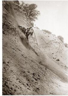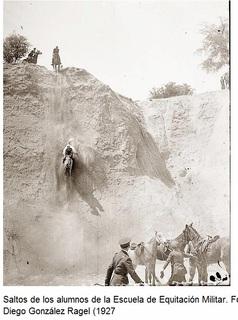 Practicas de fin de curso de la Escuela de Equitación Militar, Regimiento de Alcántara, Bajada a las Cortaduras de la Zarzuela. Alrededor de 1927.