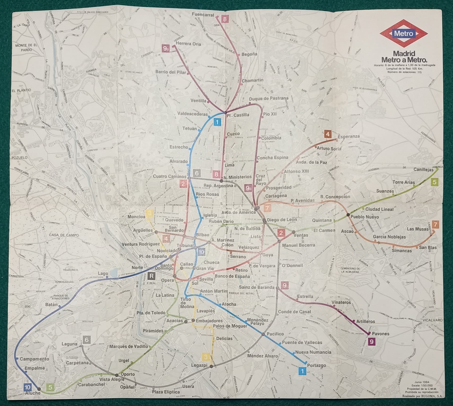 Vintage: Plano del Metro de Madrid. Edición año Junio 1984 ![]()