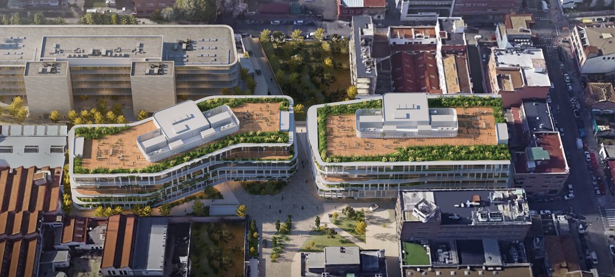 Detrás a la derecha está la sede de Endesa en un edificio propiedad de Merlin Properties.