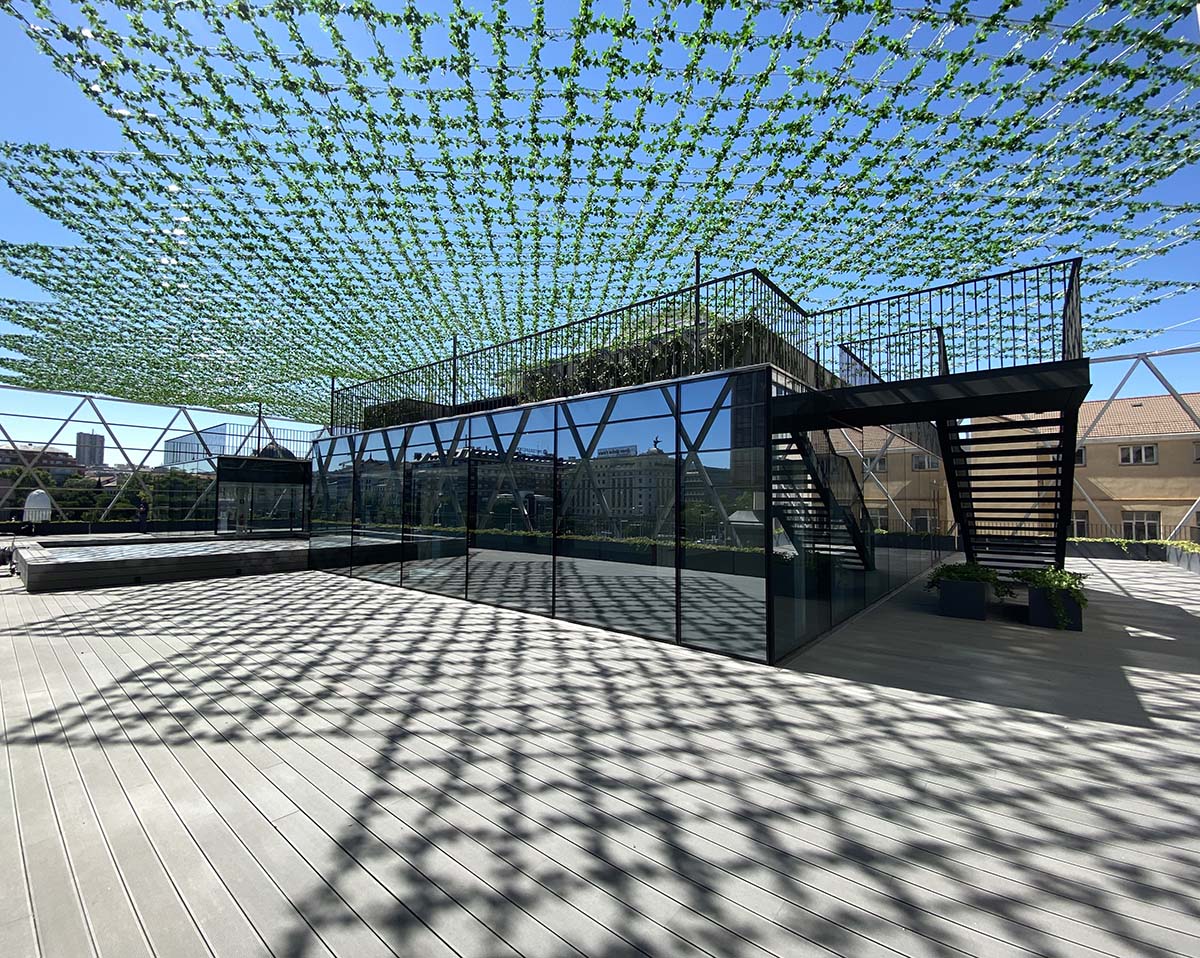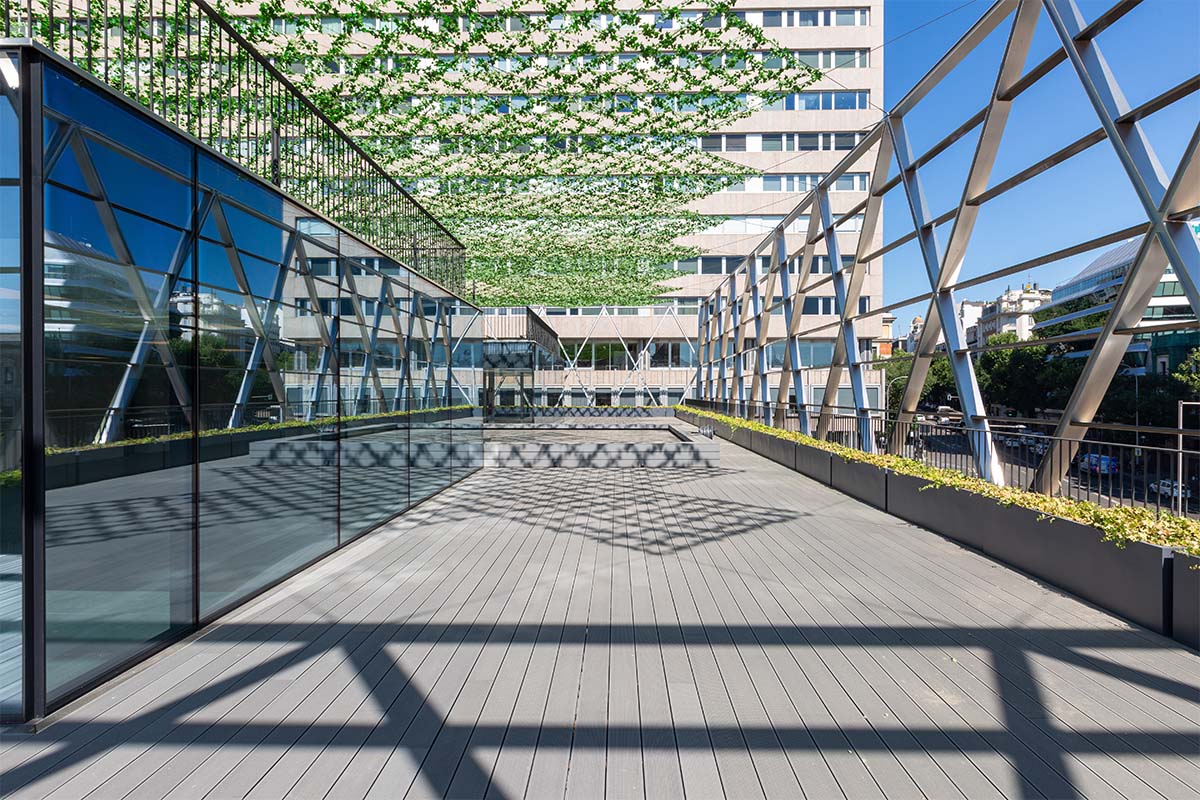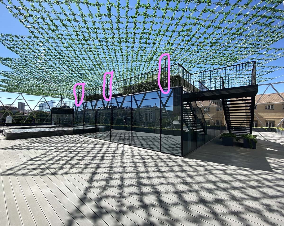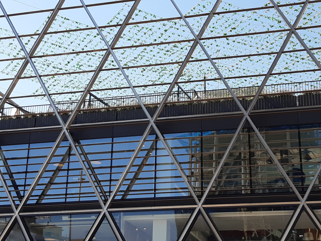 A mí me gusta, y creo que mejorará mucho cuando las enredaderas auténticas trepen por la malla. Eso sí, los falso techos son indignos, pero ahí la culpa es del promotor que es un cutre.