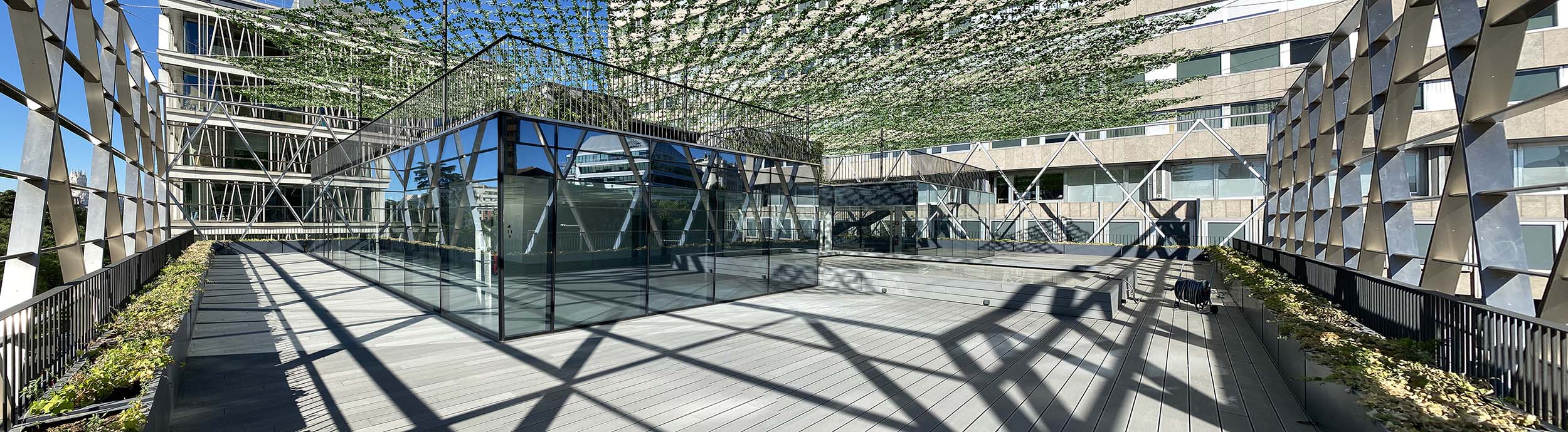 La sede de Registradores de la propiedad tiene su puntillo. Otro edificio de oficinas que está convirtiendo toda la zona de MadBit (y un poco más allá) en un macro campus de aspecto tecnológico: