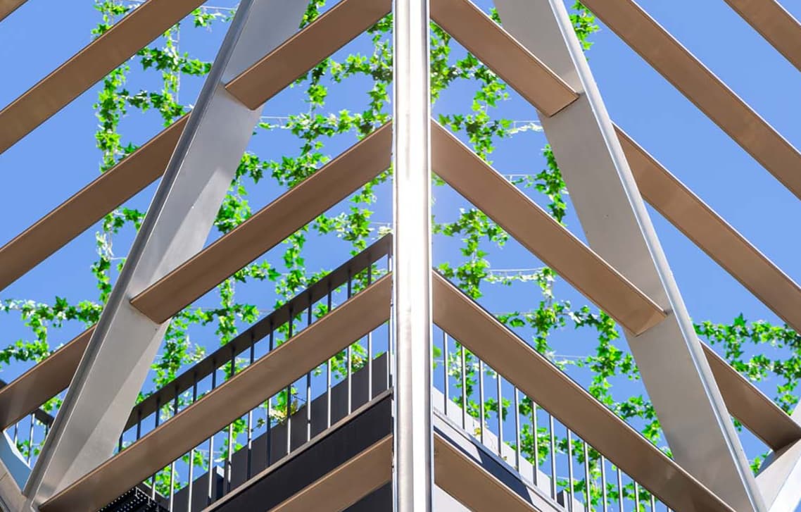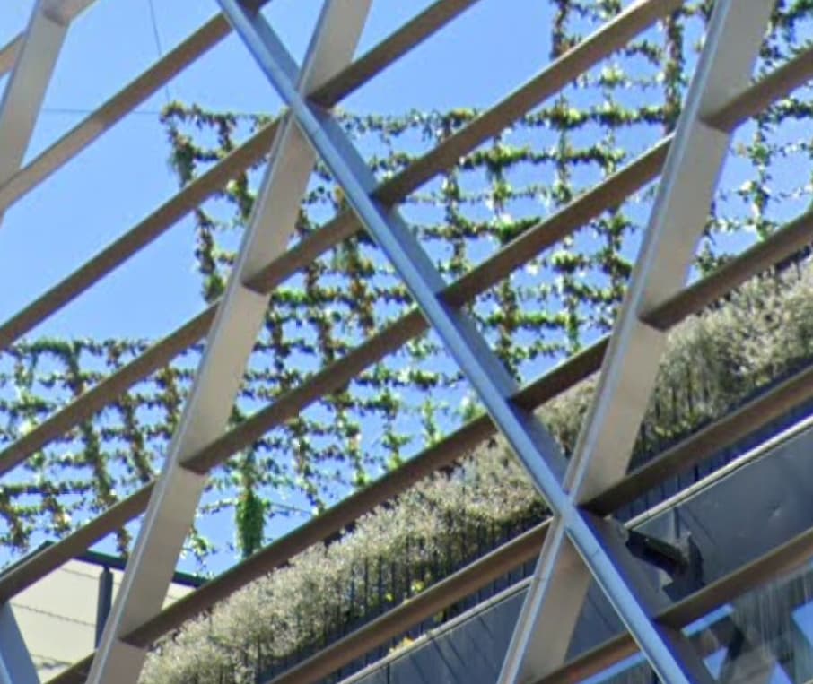Yo diría que pusieron plásticos para la inauguración y a la vez enredaderas que van creciendo, de modo que hubiese “algo” desde el primer momento.