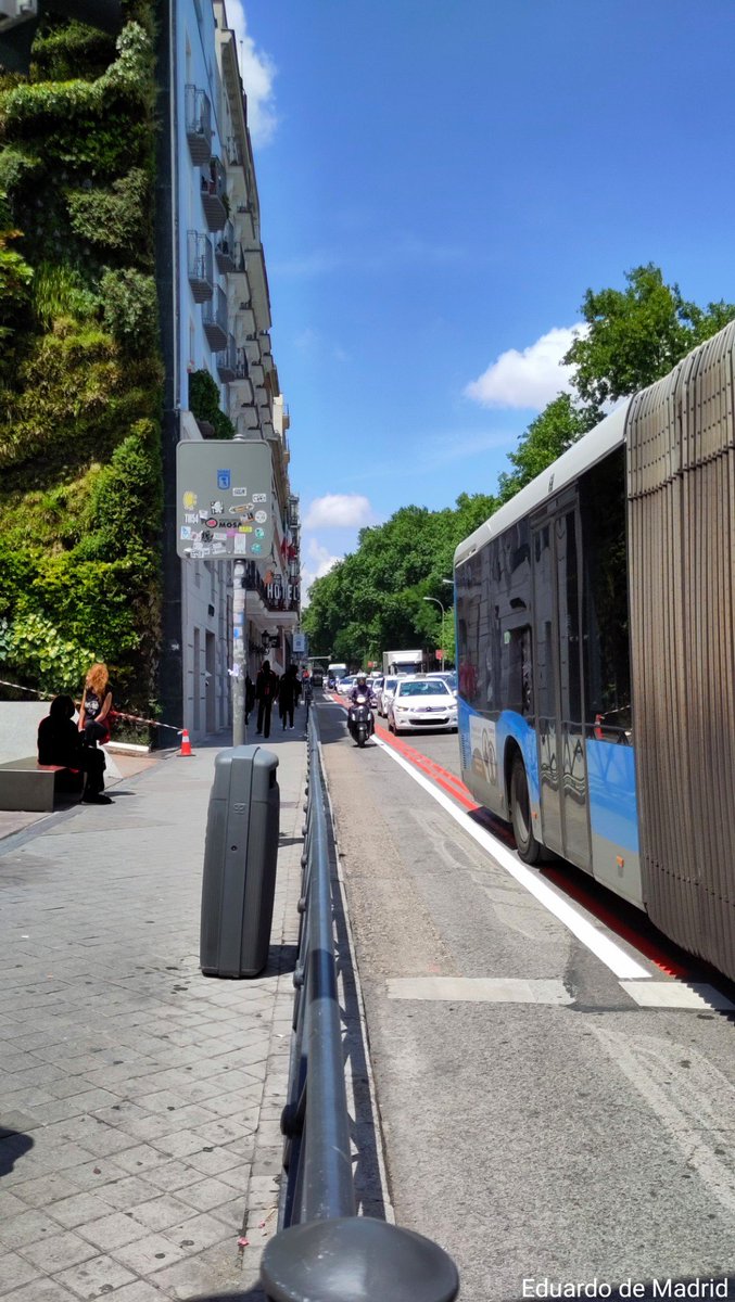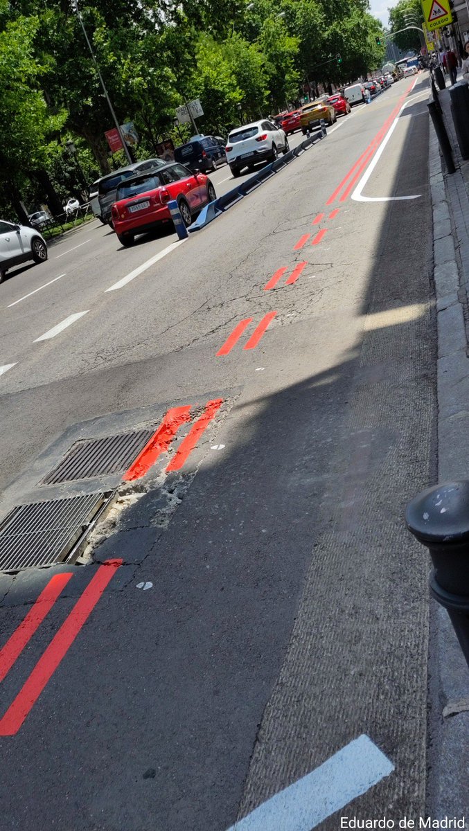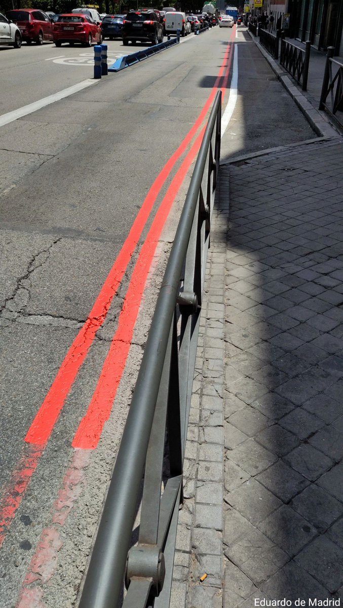 Espero que no tarden en poner un bordillo ahí y así ampliar un metro la acera, moviendo las farolas al nuevo borde y evidentemente sin poner ningún árbol.