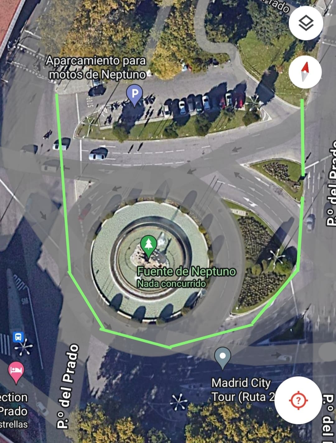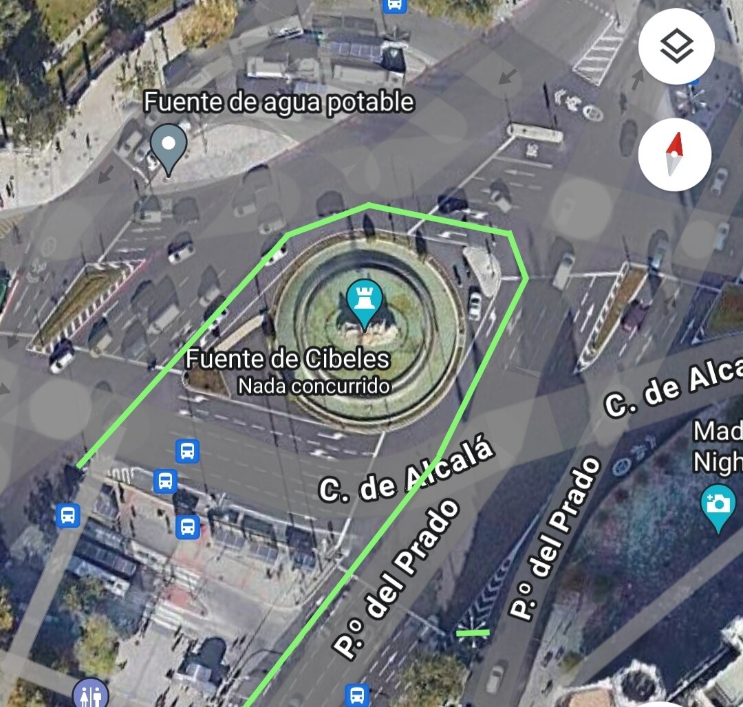 Justo después de hacer la foto me he fijado en un turista que venía del museo del Prado con un mapa y ha pasado Neptuno de largo, me he imaginado que sí fuese una plaza estacional y de verdad, se acercaría a la fuente a verla y dar un paseo agradable, cómo está ahora solo invita a seguir andando.