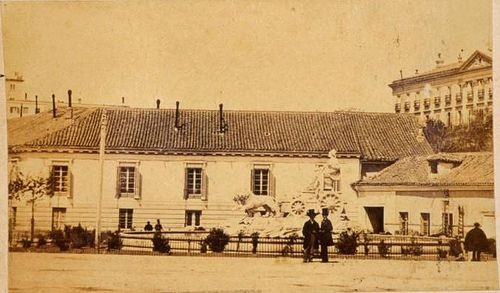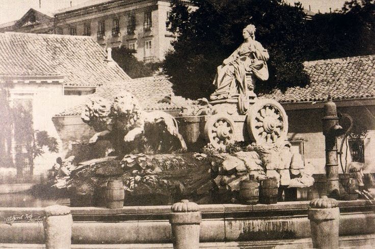 Nunca me había fijado en la bomba. De aquella se supone que no había conducciones de agua corriente. o muy limitadas a algunas fuentes. En Cibeles, casi de extrarradio ¿cogerían agua de un manantial, tal vez el arroyo Castellana? ¿Funcionaba exclusivamente como fuente de abastecimiento, más o menos artística, pero sin chorros ni juegos de agua? La verdad es que siempre pensé que las fuentes de Prado-Recoletos tenían una función esencialmente ornamental.