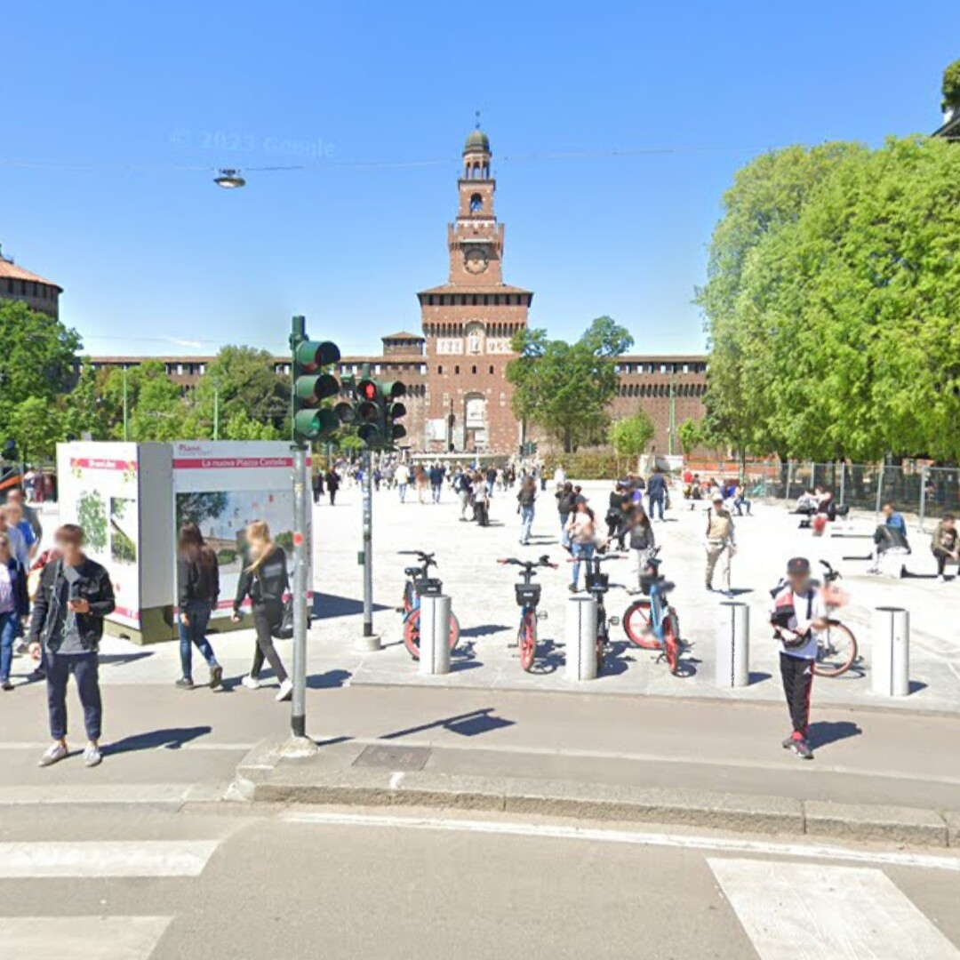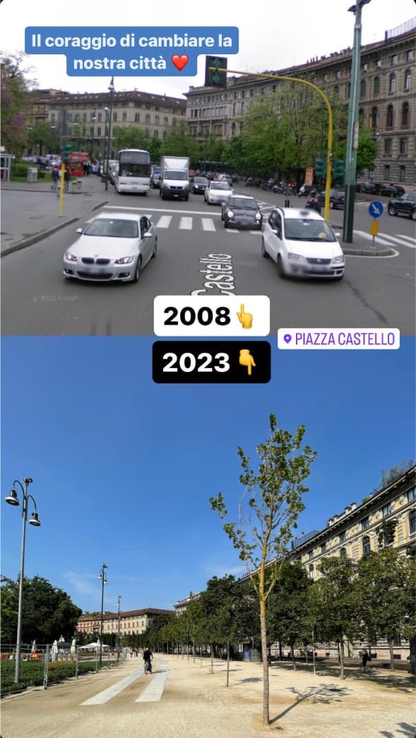 Mientras tanto, en Milán acaban de eliminar el tráfico junto al Castillo Sforzesco y han aprovechado para ampliar el espacio peatonal.